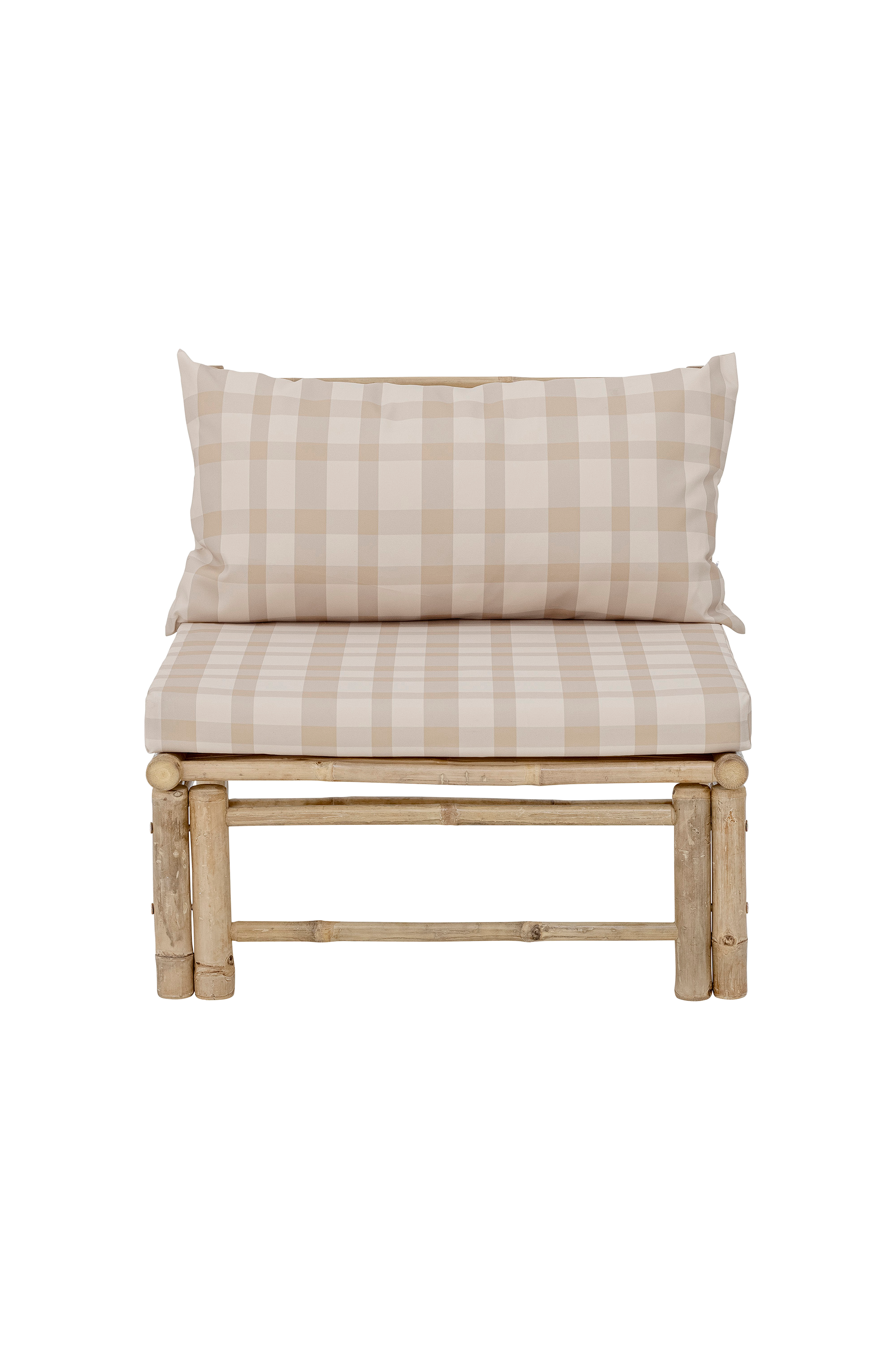 Korfu modulstol fra Bloomingville er en del af Korfu-kollektionen, der lader dig mikse og matche modulerne og skabe dine egne udendørsmøbler baseret på dine behov! Kollektionen er lavet af bambus og dette naturlige materiale giver interiøret en organisk, hyggelig og hjemlig følelse. Designet er fantastisk med et skandinavisk touch og puder lavet af polyester i smukke, bløde farver. Modulerne er nemme at montere med velcrolukninger mellem hvert modul. Perfekt til terrassen, haven eller udestuen.