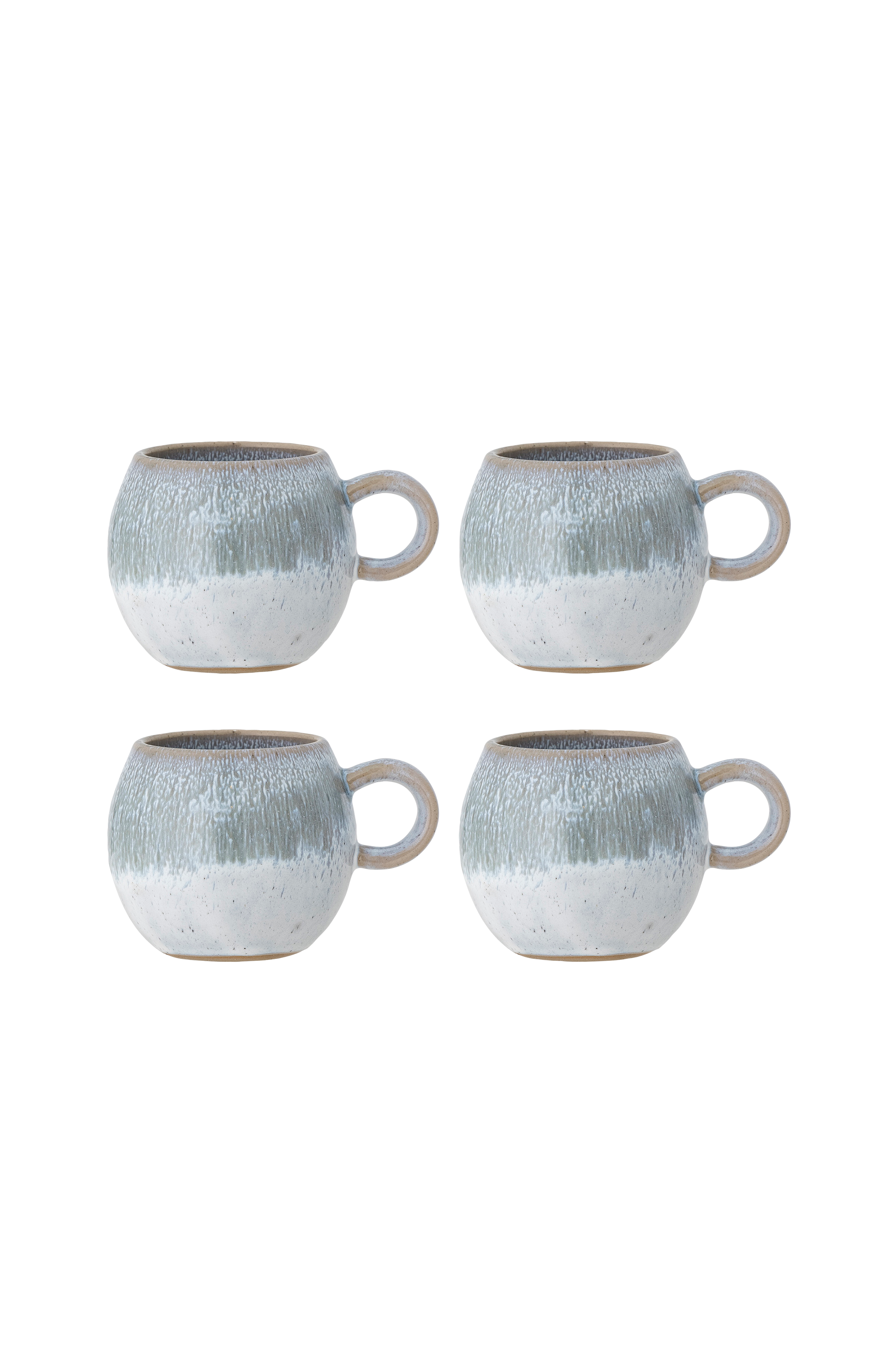 Gør din madoplevelse bedre med bloomingvilles paula kopper i en pakke med 4. Hver kop har en charmerende blanding af blå og lyse toner, som giver dit bord et strejf af elegance. De er individuelt håndlavede, så forvent dejlige variationer. På grund af glasurens natur kan der forekomme farvevariationer. Kopindhold 250 ml. H: 11 cm