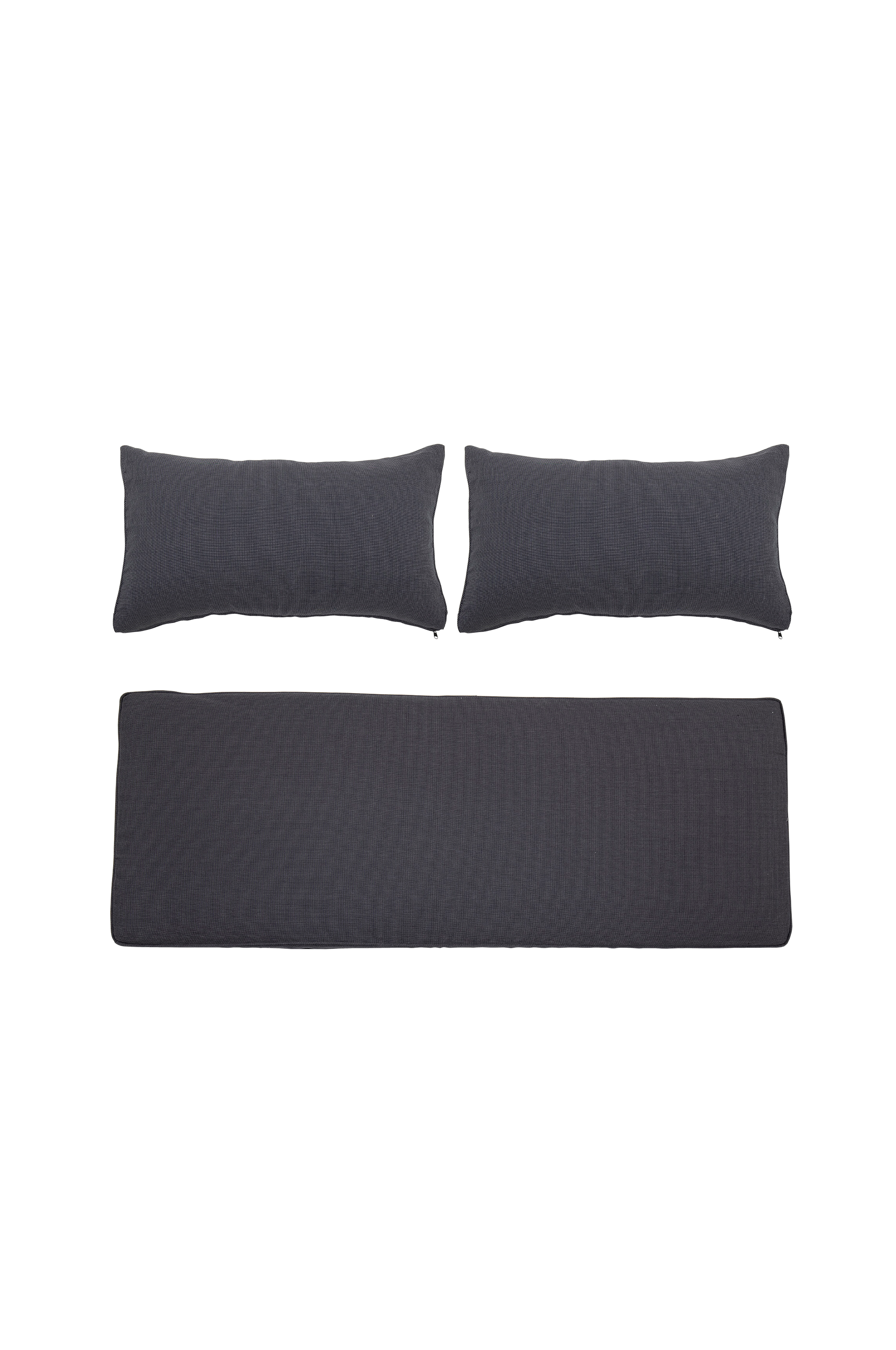 Puden pavone & mundo fra bloomingville har et vævet polyesterbetræk i en elegant mørkegrå farve. Det bløde polyesterfyld giver en behagelig siddeoplevelse, og puderne er designet til at passe perfekt til både mundo og pavone sofaerne. Betrækket kan vaskes ved 30 grader. Sæt med 3 hynder. Mål: l154xh8xw57/l75xh45xw23 cm