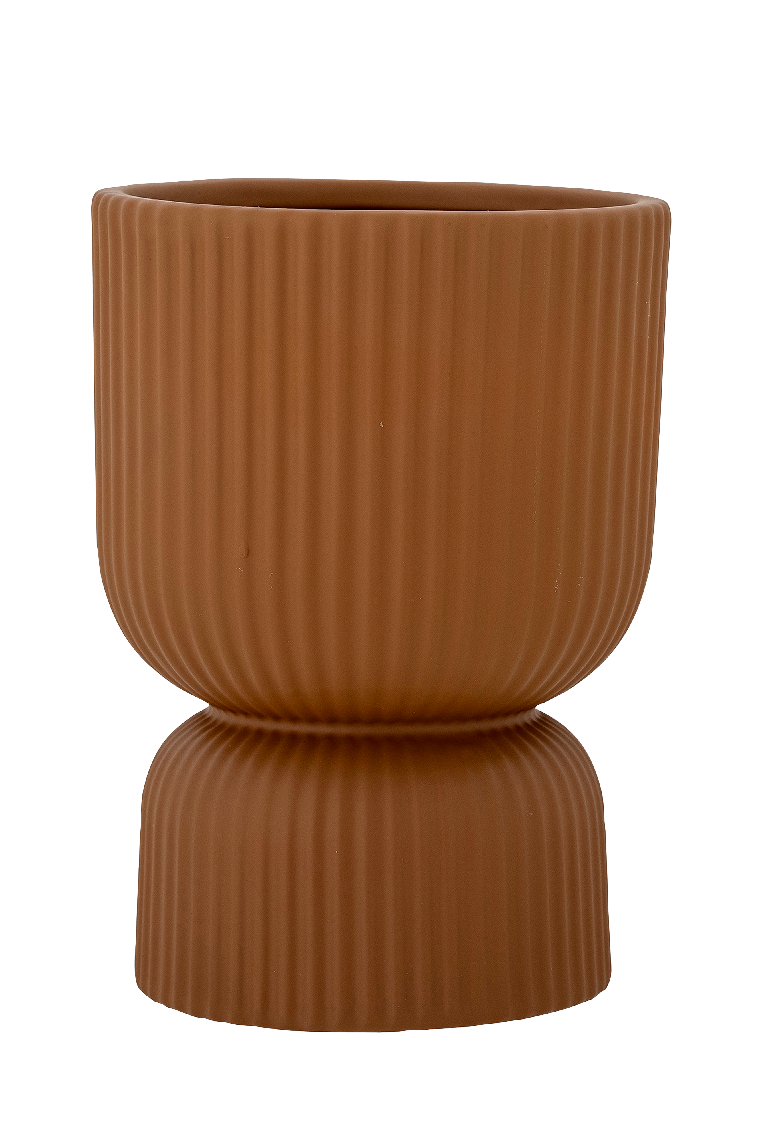 Chila potteskjuler fra Bloomingville er lavet af stentøj med en mat glasur i brun farve som giver et anderledes og interessant look. Vasen har en original form med smalle striber i glasuren. Giver en fin kontrast sammen med en grøn plante.