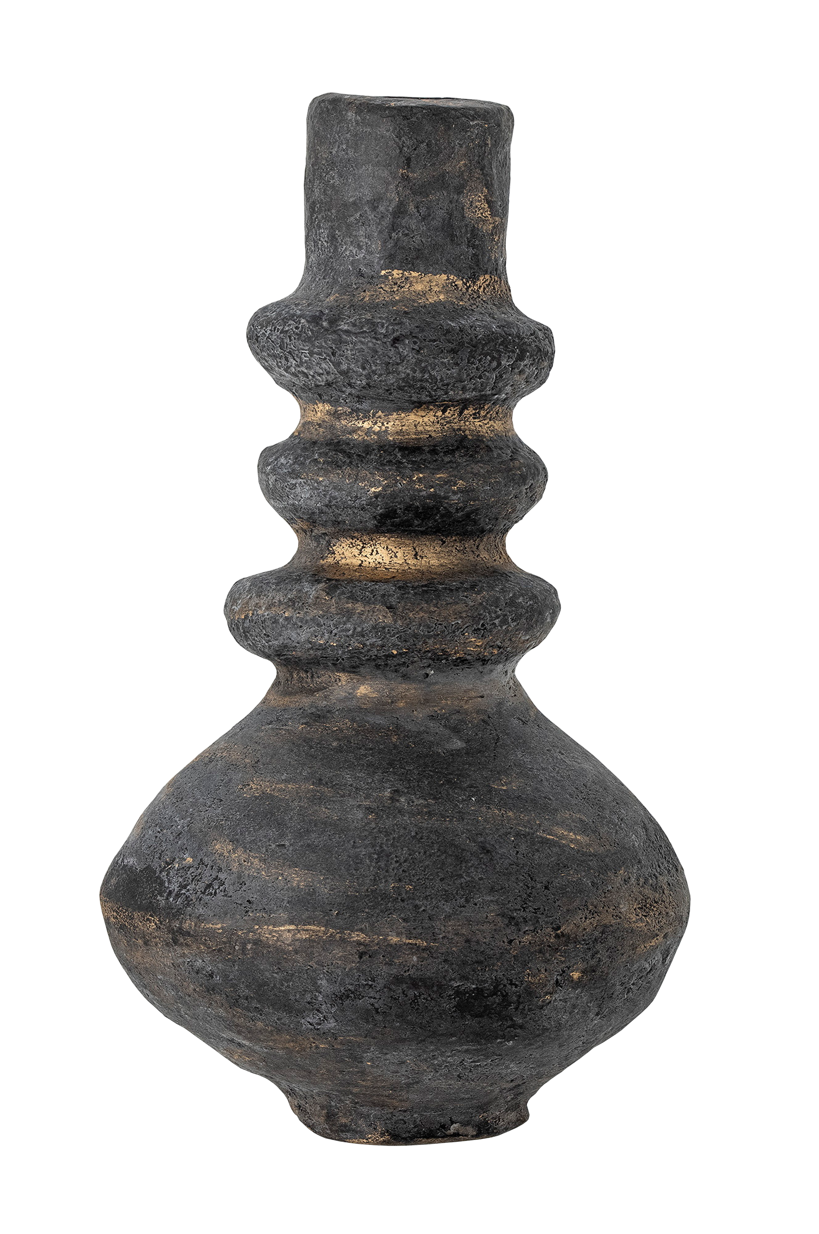 Enna pyntevase fra Bloomingville er en papmaché-vase, der har den perfekte størrelse til at stå på gulvet. Vasen i kold, sort farve med gyldent skær er håndlavet, så alle vaser varierer lidt i størrelse, form og farve, hvilket gør dem alle unikke. Brug den som en dekorativ vase til tørrede blomster eller kviste, og skab en stilfuld og hyggelig atmosfære i hjemmet. D24xH43 cm