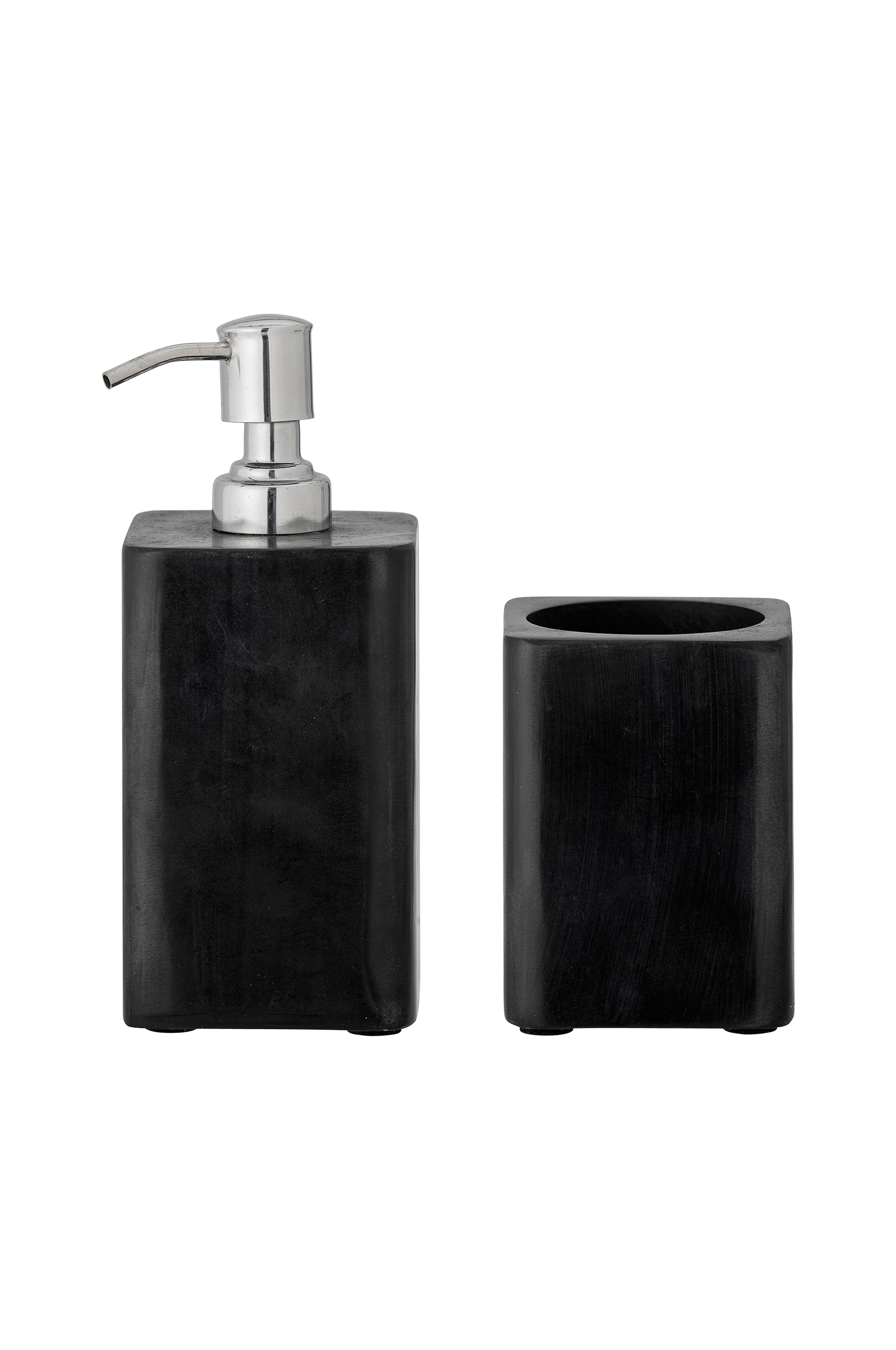 Minori sæt med sæbedispenser fra Bloomingville er en del af den smukke kollektion Minori. Sættet er lavet af fedtsten med en tung og eksklusiv stil. Perfekt i badeværelset med sæbe og tandbørster eller i køkkenet med opvaskemiddel og en opvaskebørste. L7,5xH18xB7,5 cm