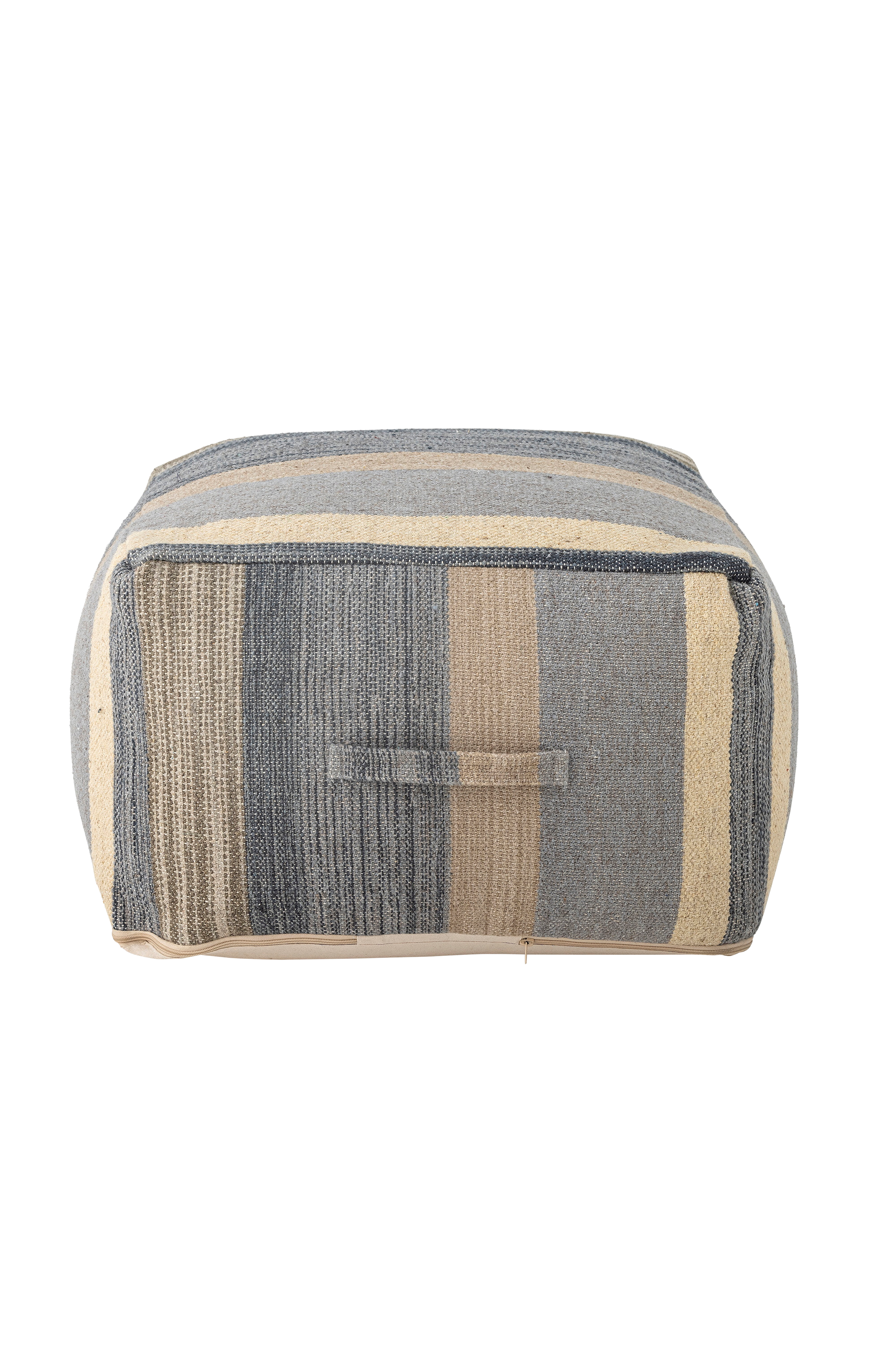 sesto puffen fra creative collection tilføjer et blødt og varmt element til din indretning. Den firkantede puf har et stribet design i blå og naturlige toner. Puffen er vævet i bomuld med et naturligt linnedlook. Perfekt som ekstra siddeplads eller fodskammel. Dimension: l60xh35xw60 cm