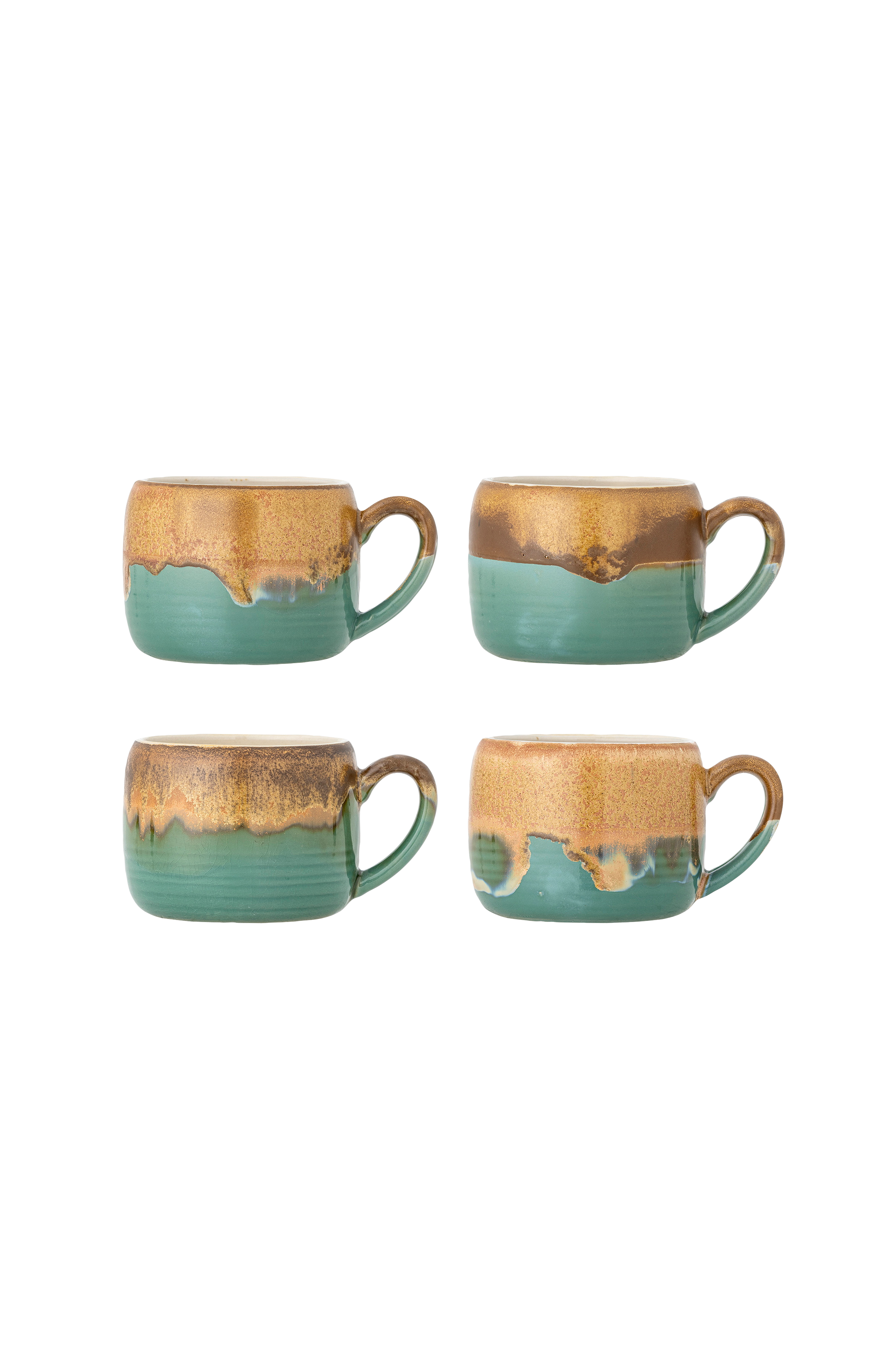 Sheen-kruset fra bloomingville kommer i et sæt med fire og er lavet af stentøj med en smuk reaktiv glasur. Glasuren løber naturligt ned ad koppen og skaber et levende look. Den reaktive glasur sikrer, at hver enkelt kop er unik.