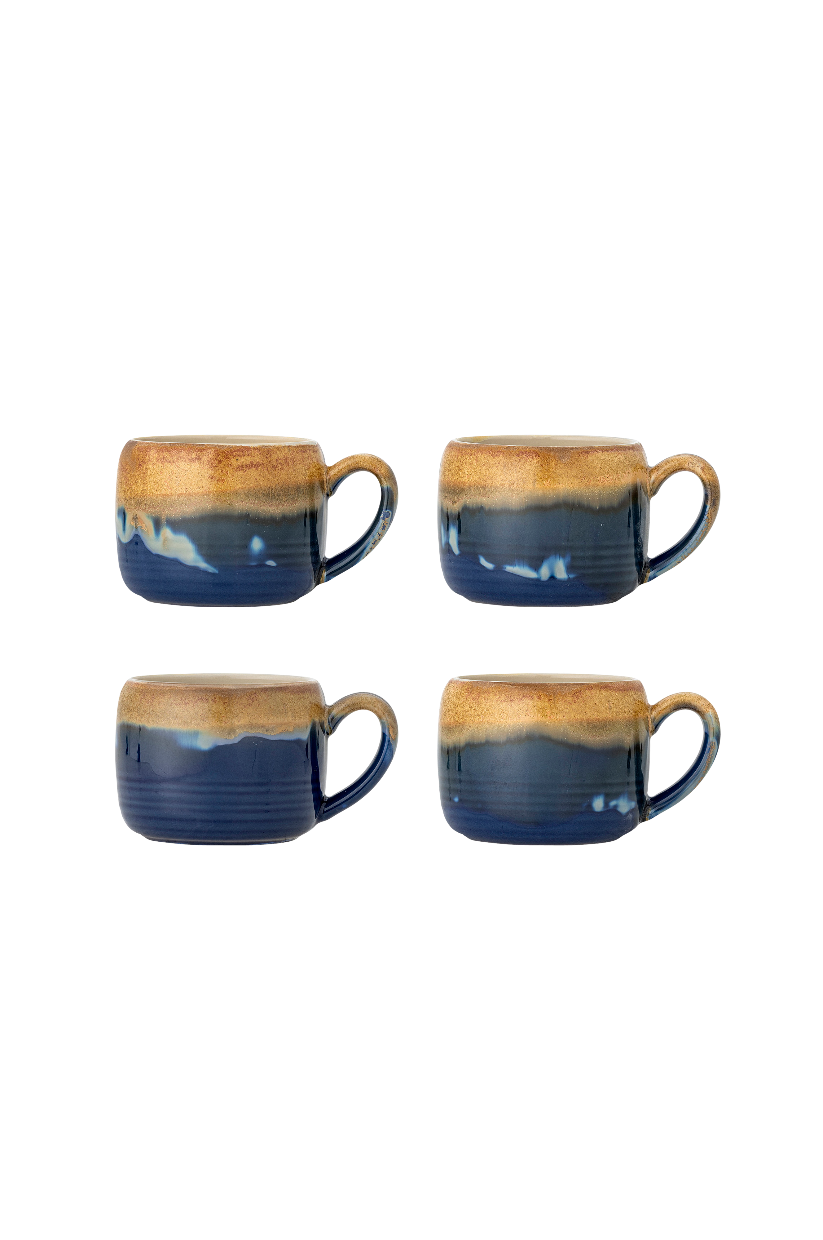 Sheen-kruset fra bloomingville kommer i et sæt med fire og er lavet af stentøj med en smuk reaktiv glasur. Glasuren løber naturligt ned ad koppen og skaber et levende look. Den reaktive glasur sikrer, at hver enkelt kop er unik.
