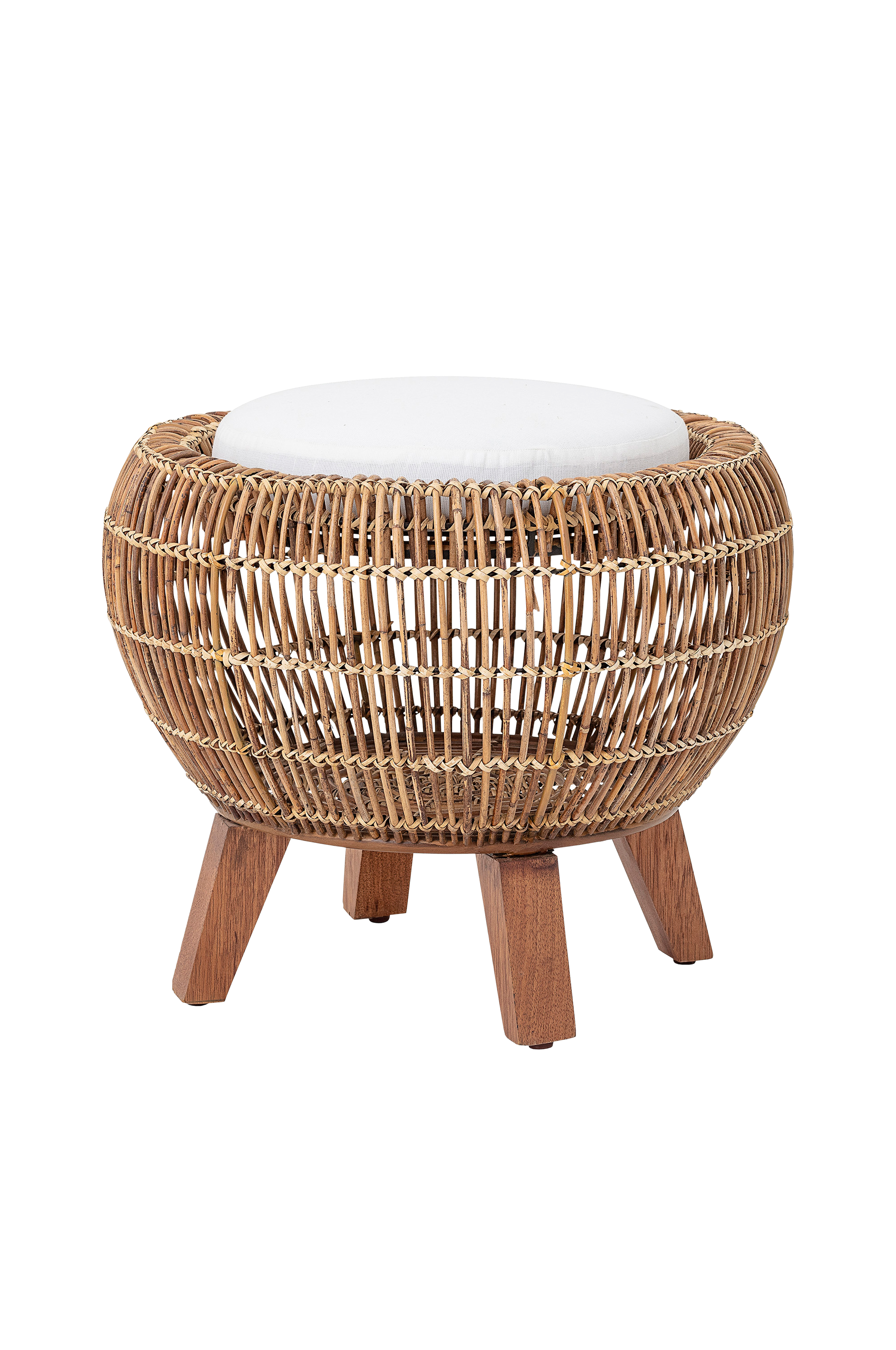 Skammel i naturmateriale/metal, løs hynde, opbevaring i skamlen. Ø 51 cm. Samlet.