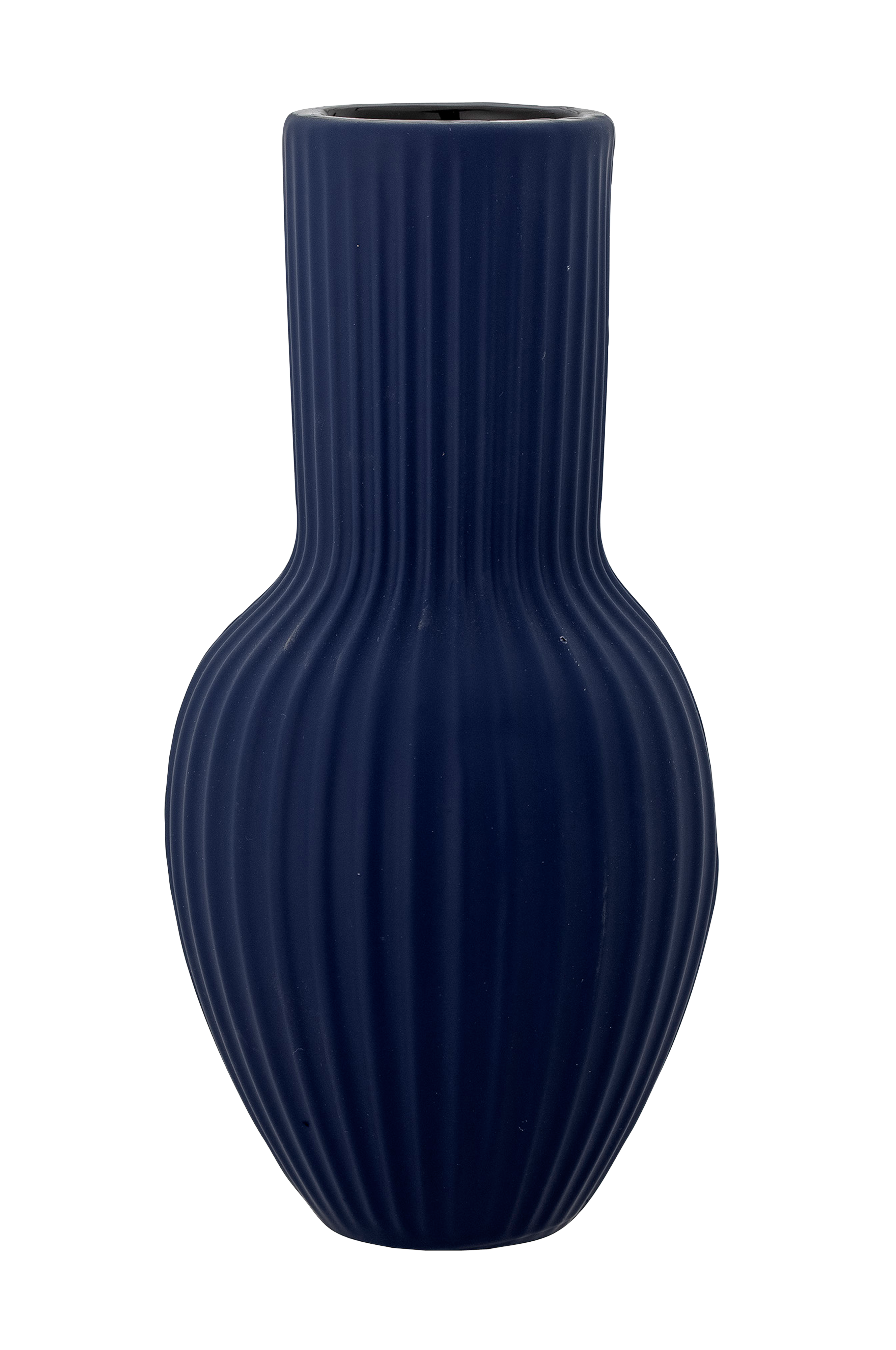Christal vase fra Bloomingville er lavet af stentøj med en mat latexglasur i blå, som giver et anderledes og interessant look. Vasen har en original form med smalle striber i glasuren. Helt perfekt til en buket med tørrede blomster.