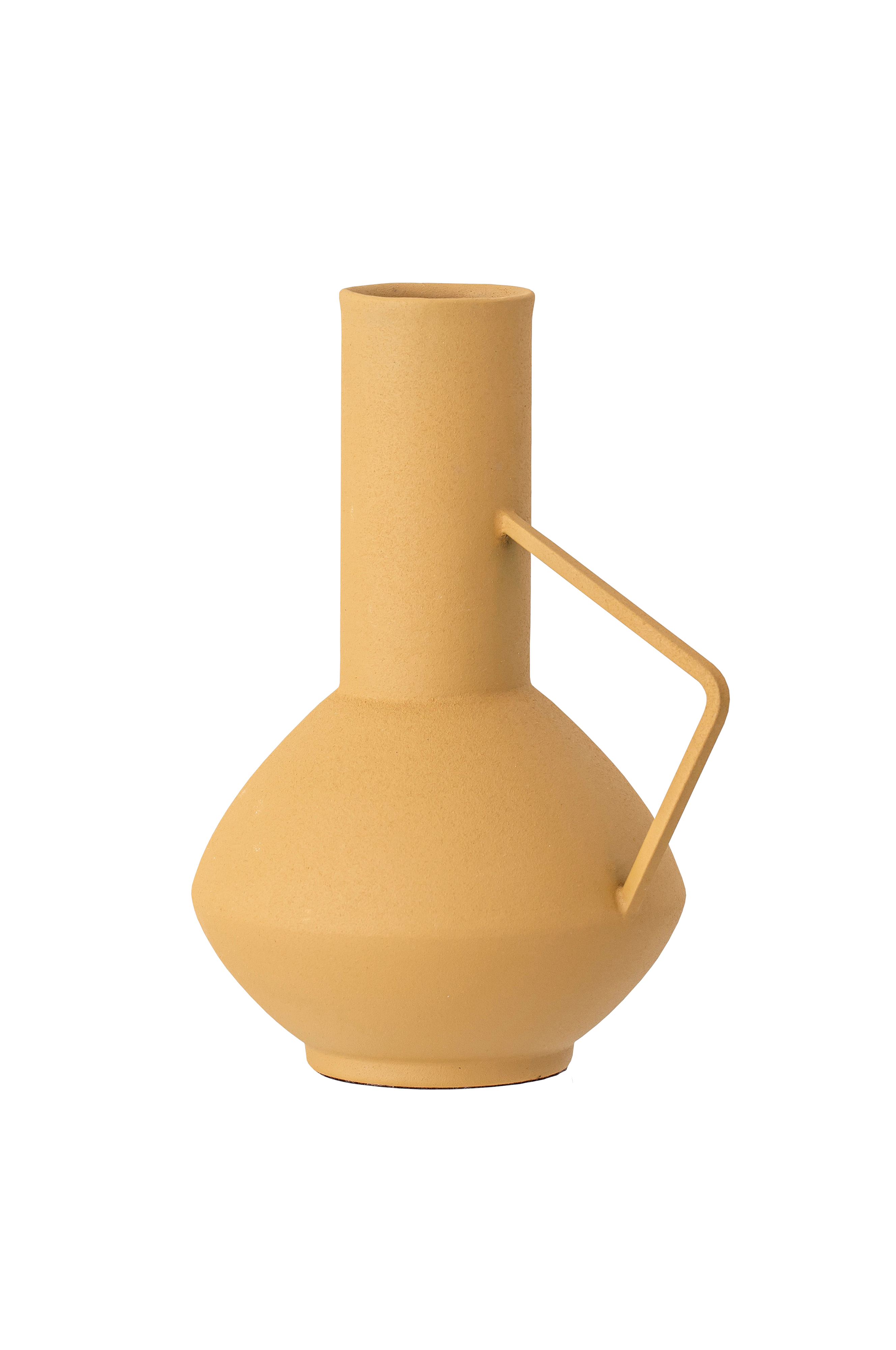Jordfarvet metalvase med grov finish som kan kombineres med andre pynteting for en perfekt og moderne stil.