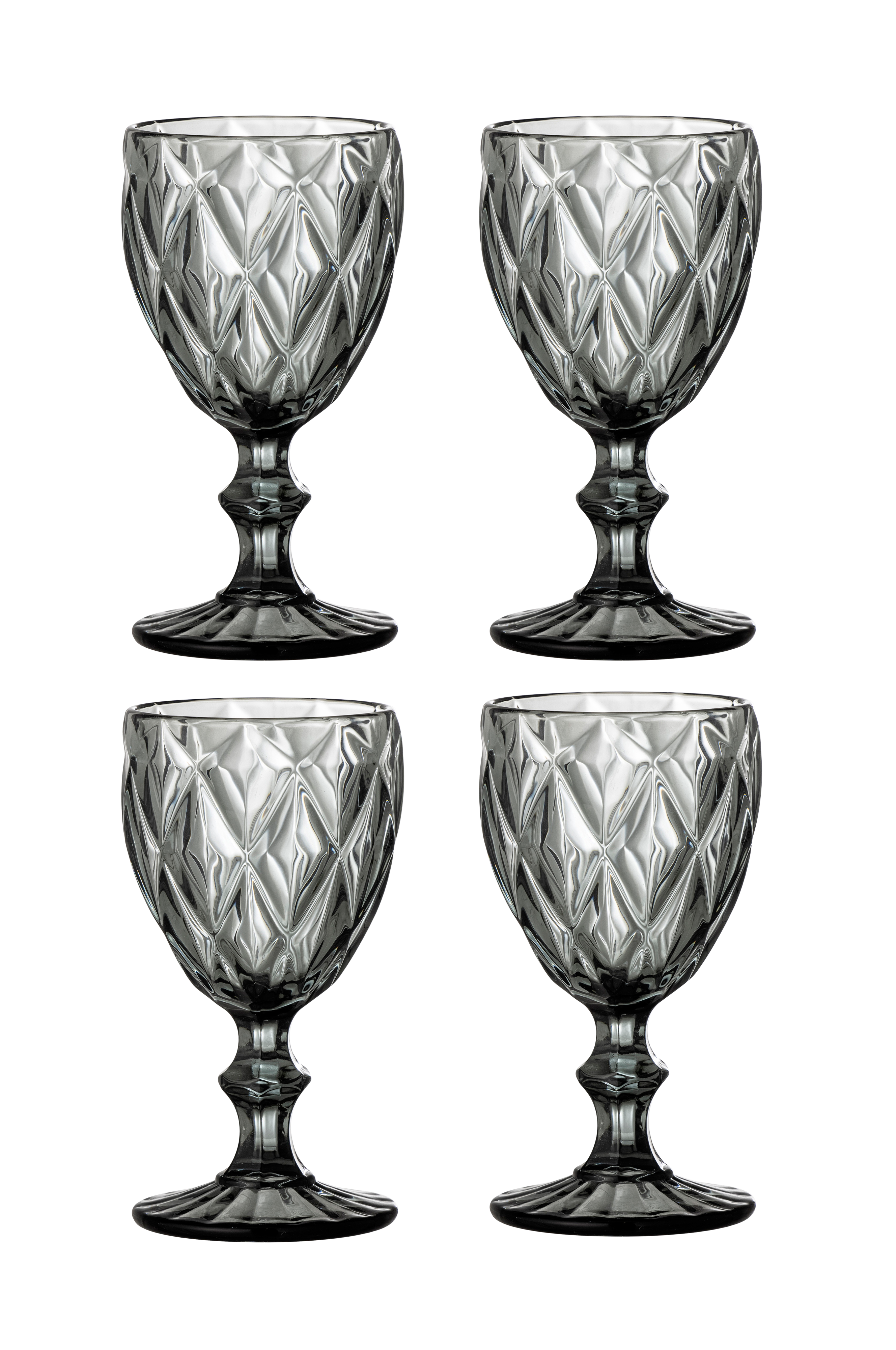 Vinglas fra Bloomingville i gråt glas med facetteret mønster, der giver et elegant og moderne udtryk.