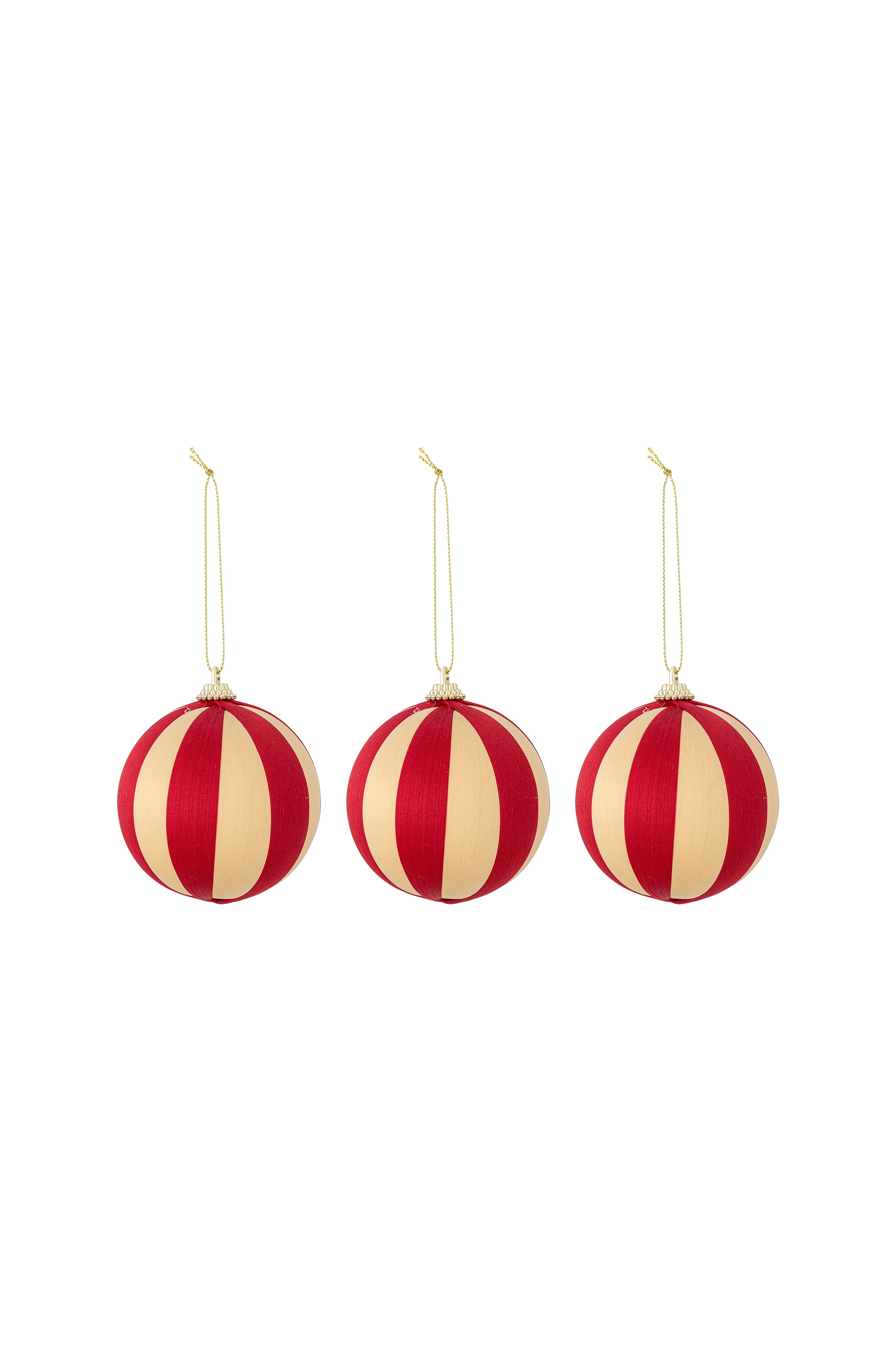 Wynn Ornament fra Bloomingville er et sæt med tre elegante julekugler, smukt dekoreret med klassiske røde og hvide striber. Deres tidløse design tilføjer en festlig charme til enhver juleindretning, og hver kugle leveres med en elegant guldfarvet snor, hvilket gør dem perfekte til at hænge på juletræet eller som en del af en stilfuld sæsonudstilling.