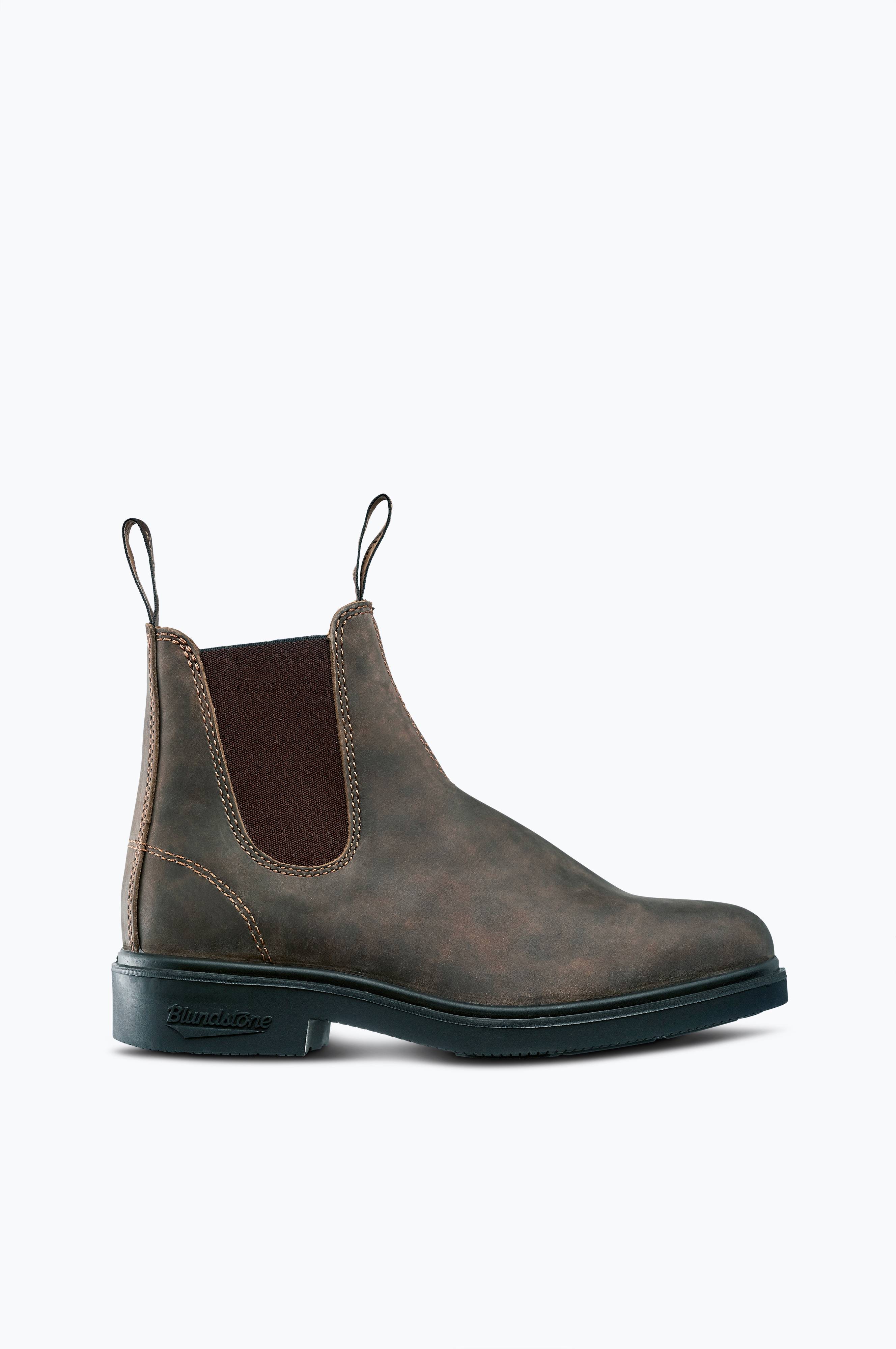 Chelseaboots fra Blundstone er en solid, klassisk chelsea-støvle. Overdelen er i rigtig fint lidt grovere skind med mat overflade. Den mellembrune model har fine nuancer. Brede elastikker på begge sider om skaftet. Uforet. Vævet Blundstone-strop på skaftkanten både foran og bagpå. Helstøbt sål med mønster for godt greb. Denne støvle er flot, let og robust.