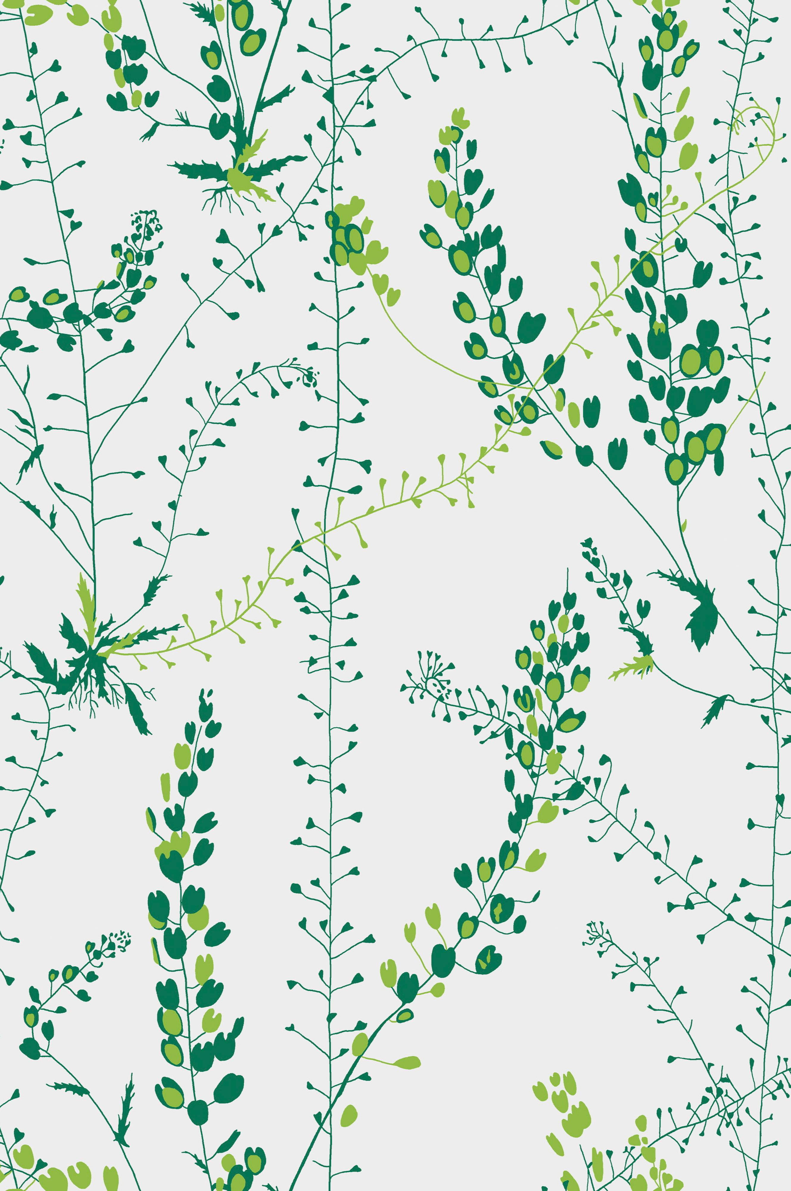 Design af Arne Jacobsen. Arne nærede en stor kærlighed til det grafisk enkle men også for naturen. Utallige er hans tekstilmønstre med motiver fra den skandinaviske flora. Disse yndefulde ranker af blade blev kunst gennem hans hænder og snor sig harmonisk hen over væggen. Hver rulle er 10,05 m. Bredde 53 cm. Forskudt mønsterrapport 53 cm. Printet i Sverige på et non-woven materiale. Tapetet er Easyup-mærket, hvilket betyder, at du påfører limen direkte på væggen, og du behøver ikke grunde først.
