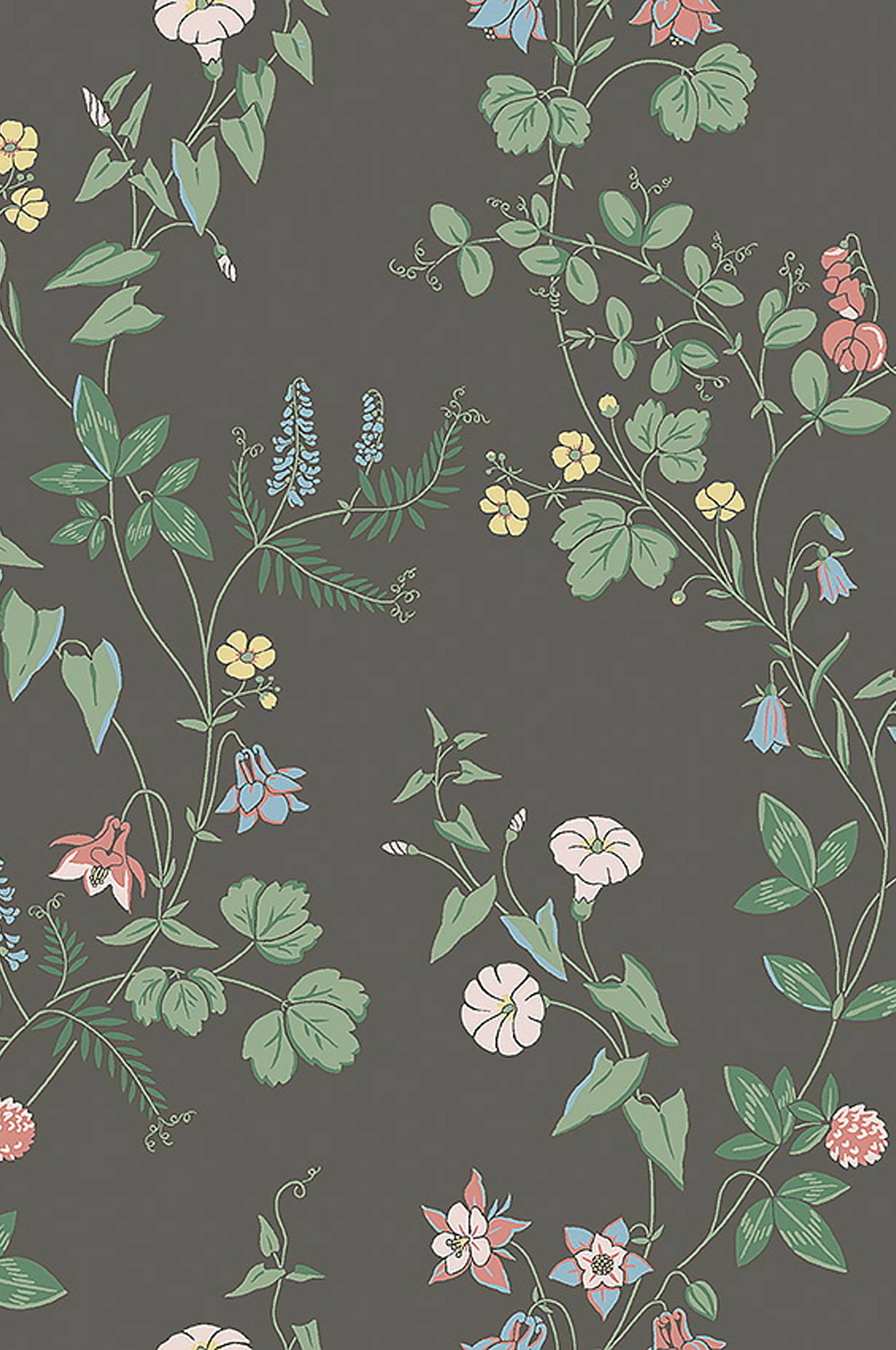 Det mørke, blomstrede tapet Midsummer Evet er inspireret af den svenske tradition med at lægge syv slags blomster under puden midsommernatten. Mønsteret er håndmalet af Jenny Hahne Gadd for Boråstapeter. Hver rulle er 10,05 m. Bredde 53 cm. Forskudt mønsterrapport 53 cm. Printet i Sverige på et non-woven materiale. Tapetet er Easyup-mærket, hvilket betyder, at du påfører limen direkte på væggen, og du behøver ikke grunde først.