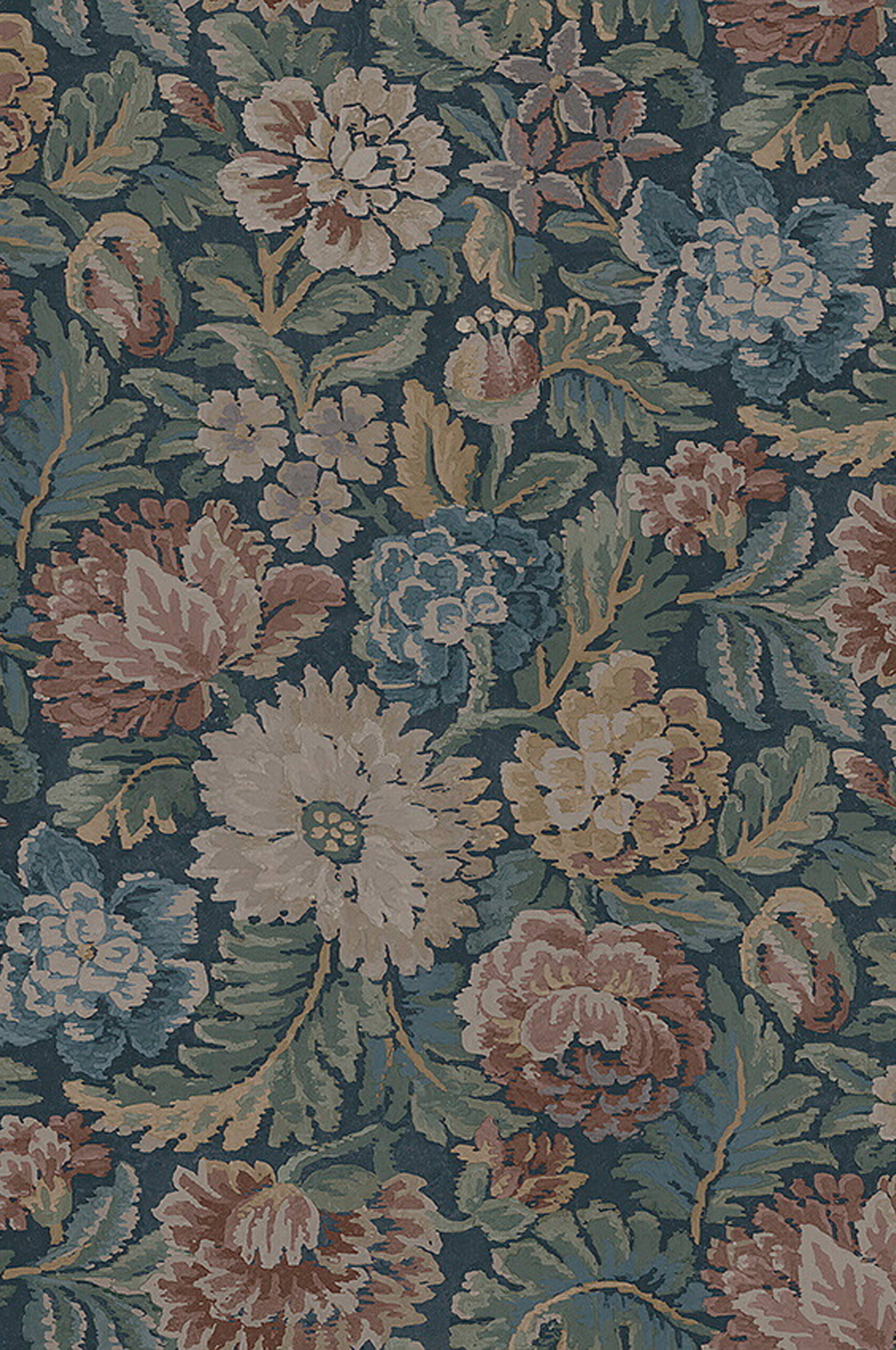 Nightingale Garden er et blomstret tapet med et prangende, jacquardlignende mønster. Den franske original er mere end hundrede år gammel og blev skabt til tekstiler. Hver rulle er 10,05 m. Bredde 53 cm. Lige mønsterrapport 53 cm. Printet i Sverige på et non-woven materiale. Tapetet er Easyup-mærket, hvilket betyder, at du påfører limen direkte på væggen, og du behøver ikke grunde først.