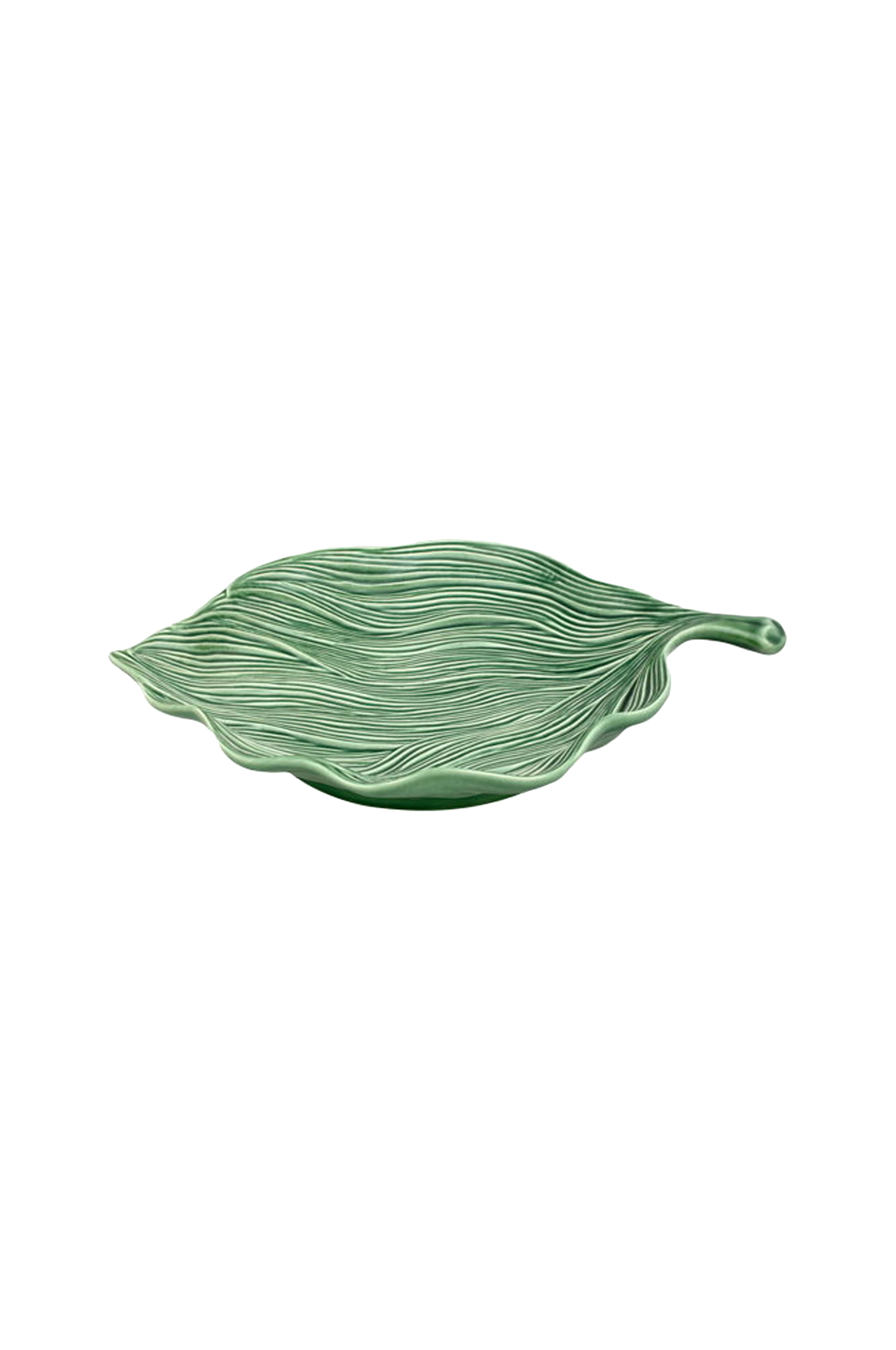 Serveringsfad af glaseret lertøj. Mål: Længde 37 cm, bredde 27 cm, højde 6 cm.