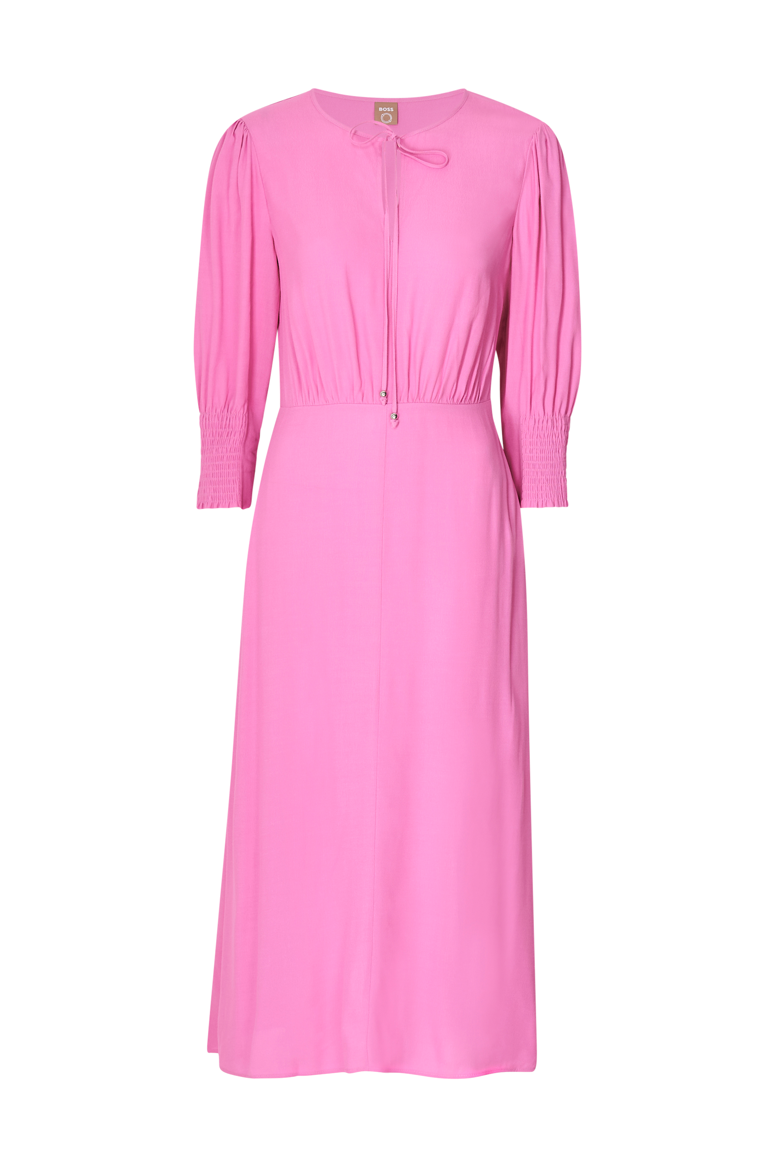 • Figurformede model med rynket talje• Rund hals med ventilation og bindbart bånd foran• Bredt ærme med bred smock ved manchetterne• Længde: 125 cm i størrelse 36