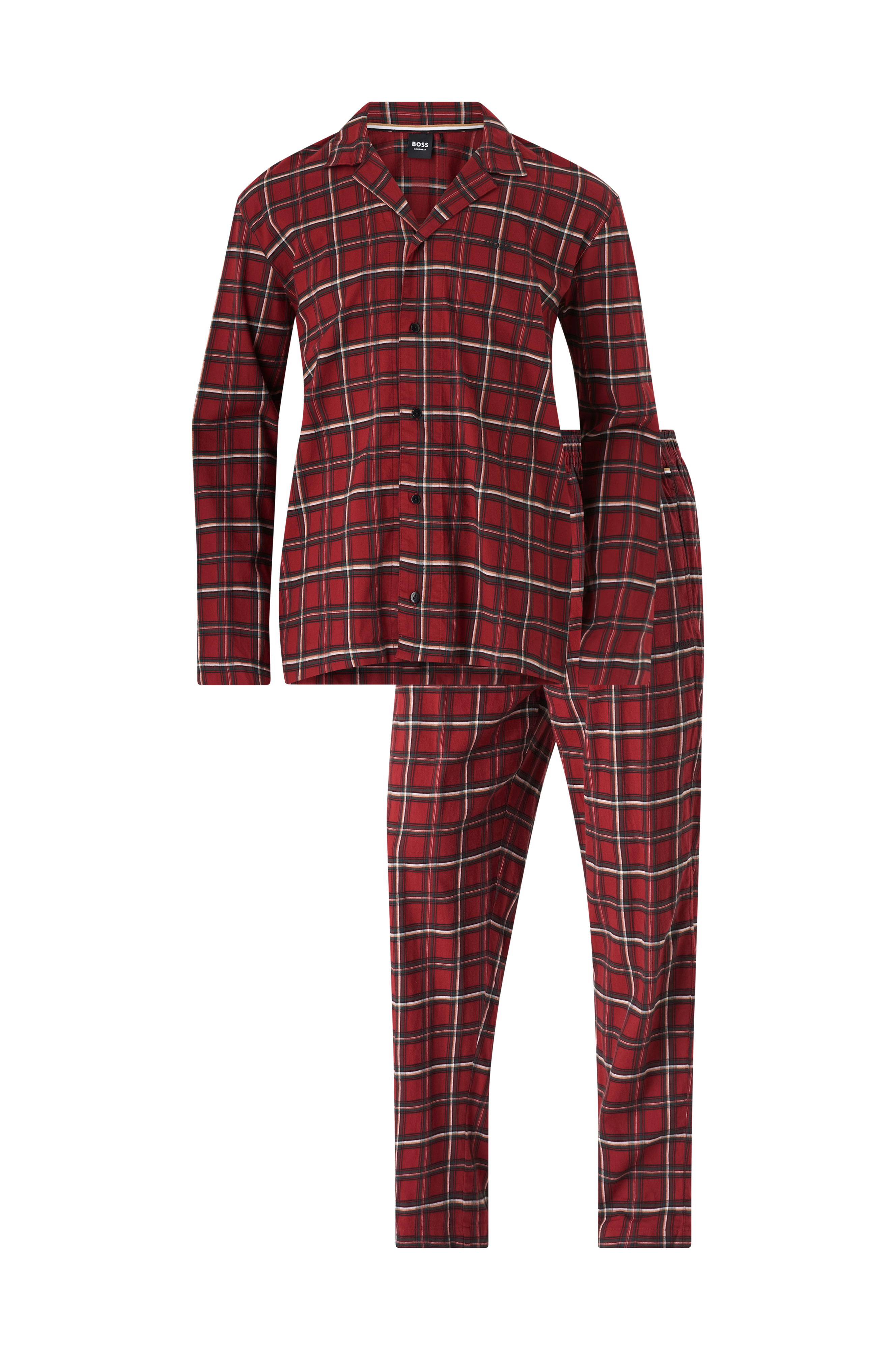 • 2-delt pyjamassæt i vævet bomuld• Langærmet skjorte med knaplukning• Bukser med elastisk talje• Gylp med en knap• Sidelommer• Leveres i en gaveæske