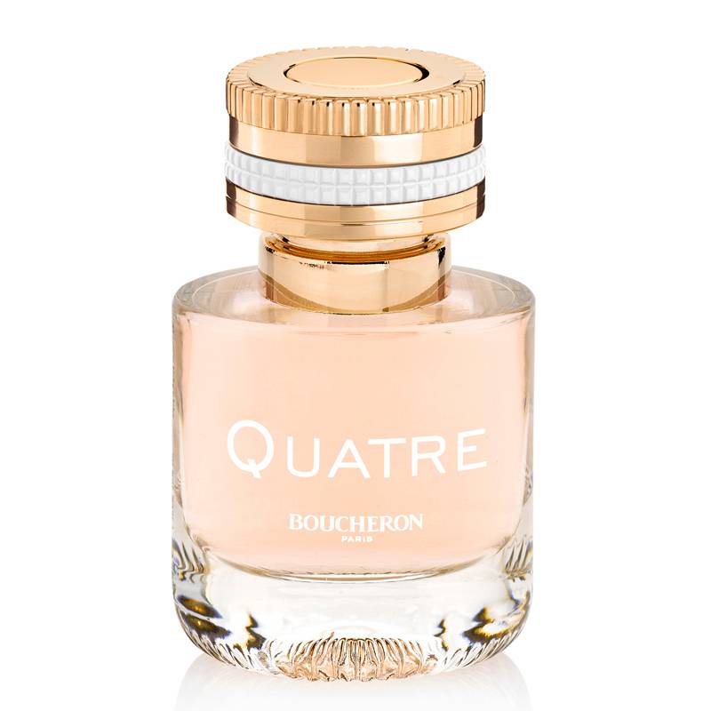 QUATRE - ringene er symbol for moderne elegance - ikonisk for huset Boucheron.Boucherons nye duftpar kan beskrives sådan: moderne, karismatiske og samtidig klassiske.Flaskernes design er synligt inspireret af ringene.Blomstrende, frugt- og træagtig.Den runde feminine duft åbner med frugtagtige sprudlende citrusnoter af bl.a. grøn mandarin og ribs blandet med jordbær.Duftens sensuelle hjerte er fyldt af roser og jasmin. I basen blandes gyldne træsorter med sensuel moskus og cashmeran.