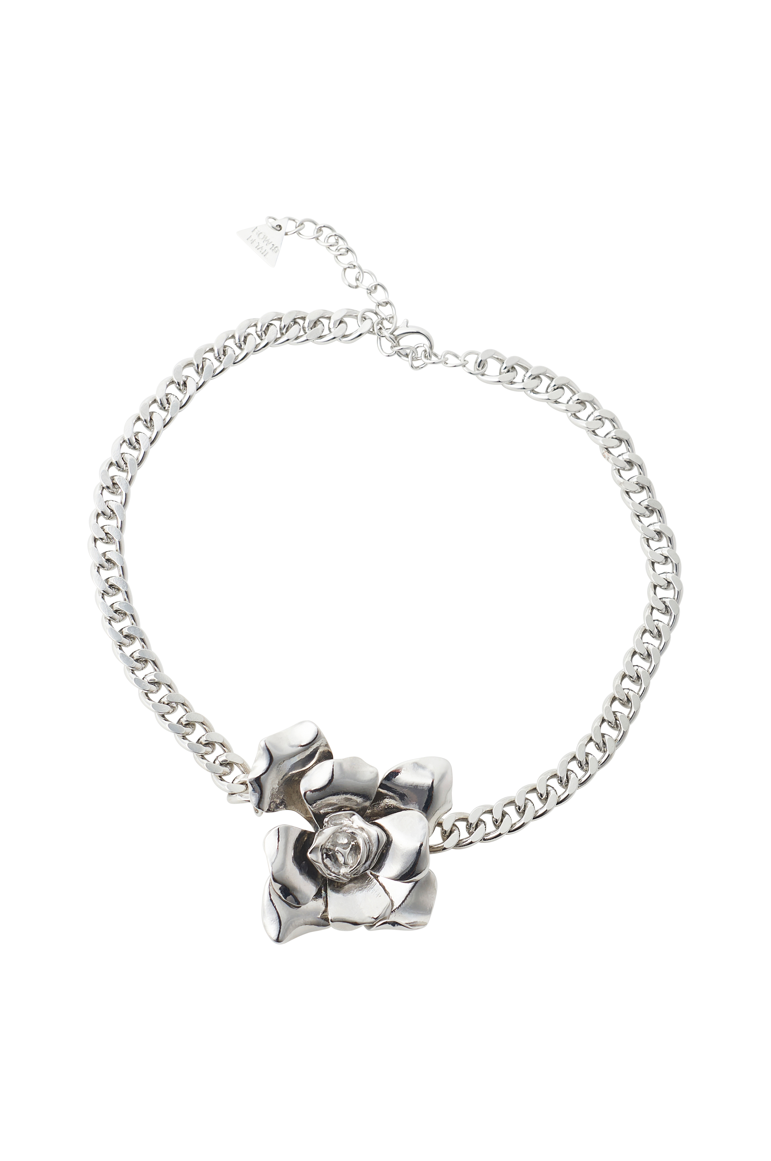 • Halskæde med et vedhæng i form af en blomst• Fremstillet af sølvfarvet metal• Blomsterdiameter: 5 cm• Kædelængde 32 + 6 cm
