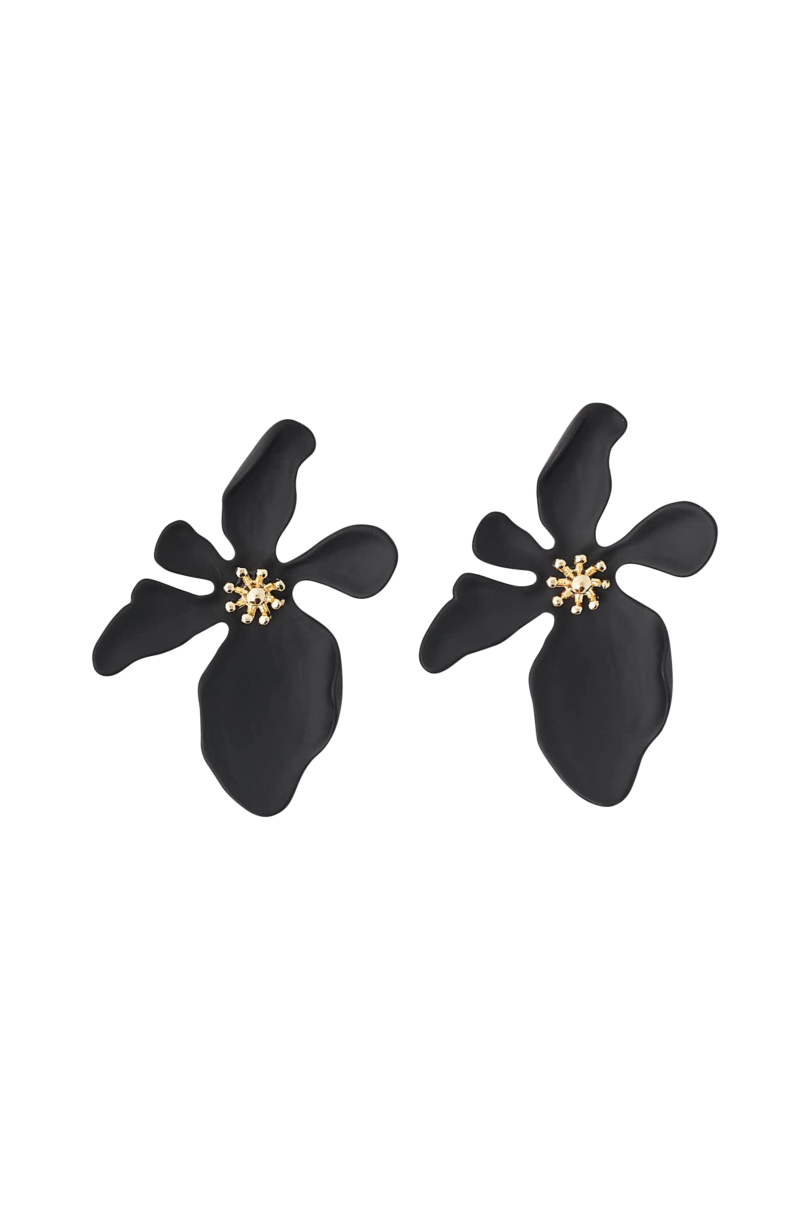• Blomsterformede øreringe• Fremstillet af messing med et sort akryldæksel.• Mål: 4,5 x 3,3 cm
