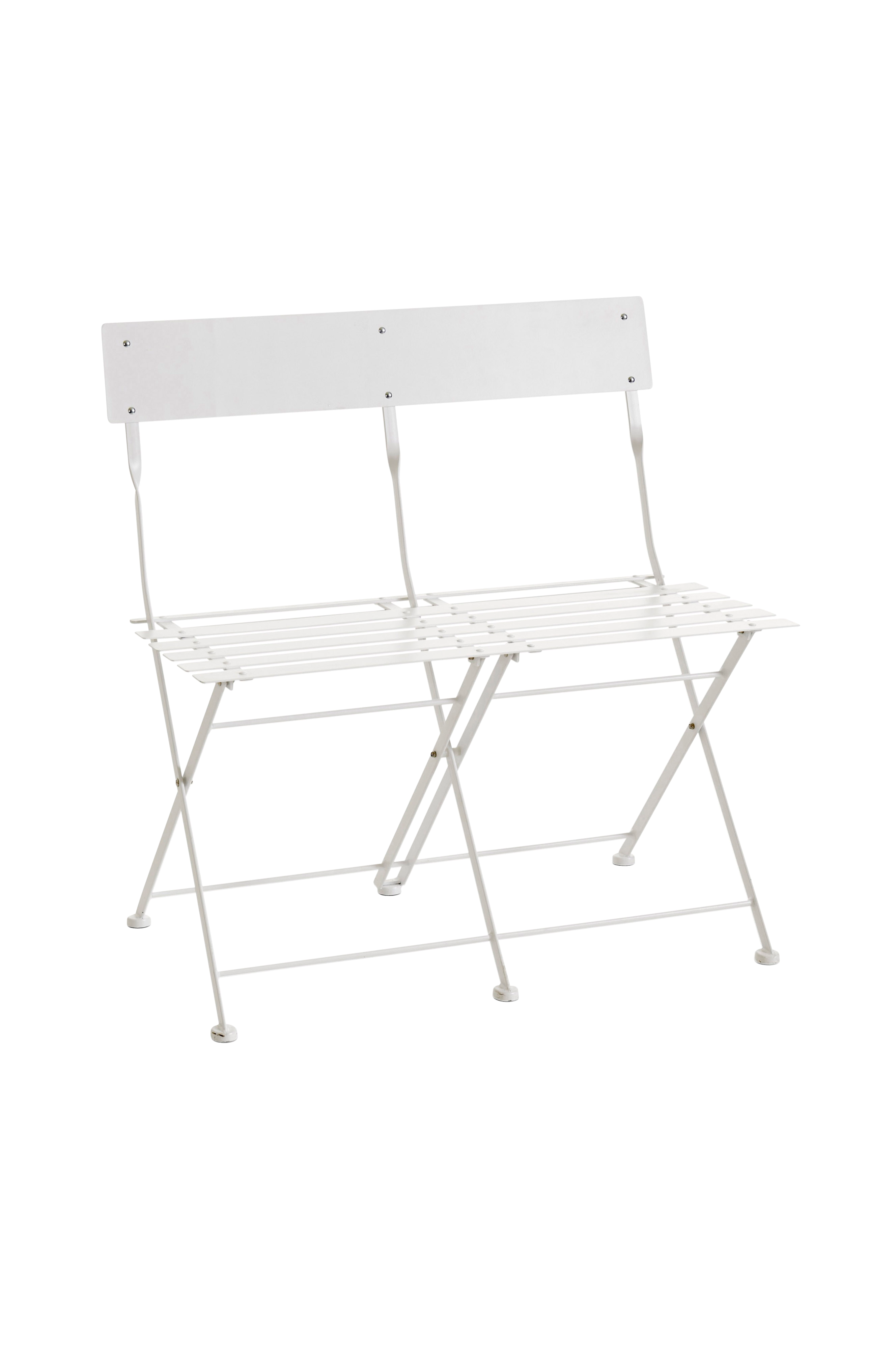 Lille alsidig bænk af lakeret stål, sammenklappelig. Bredde 82, dybde 45, højde 82, siddehøjde 45 cm. Samlet.