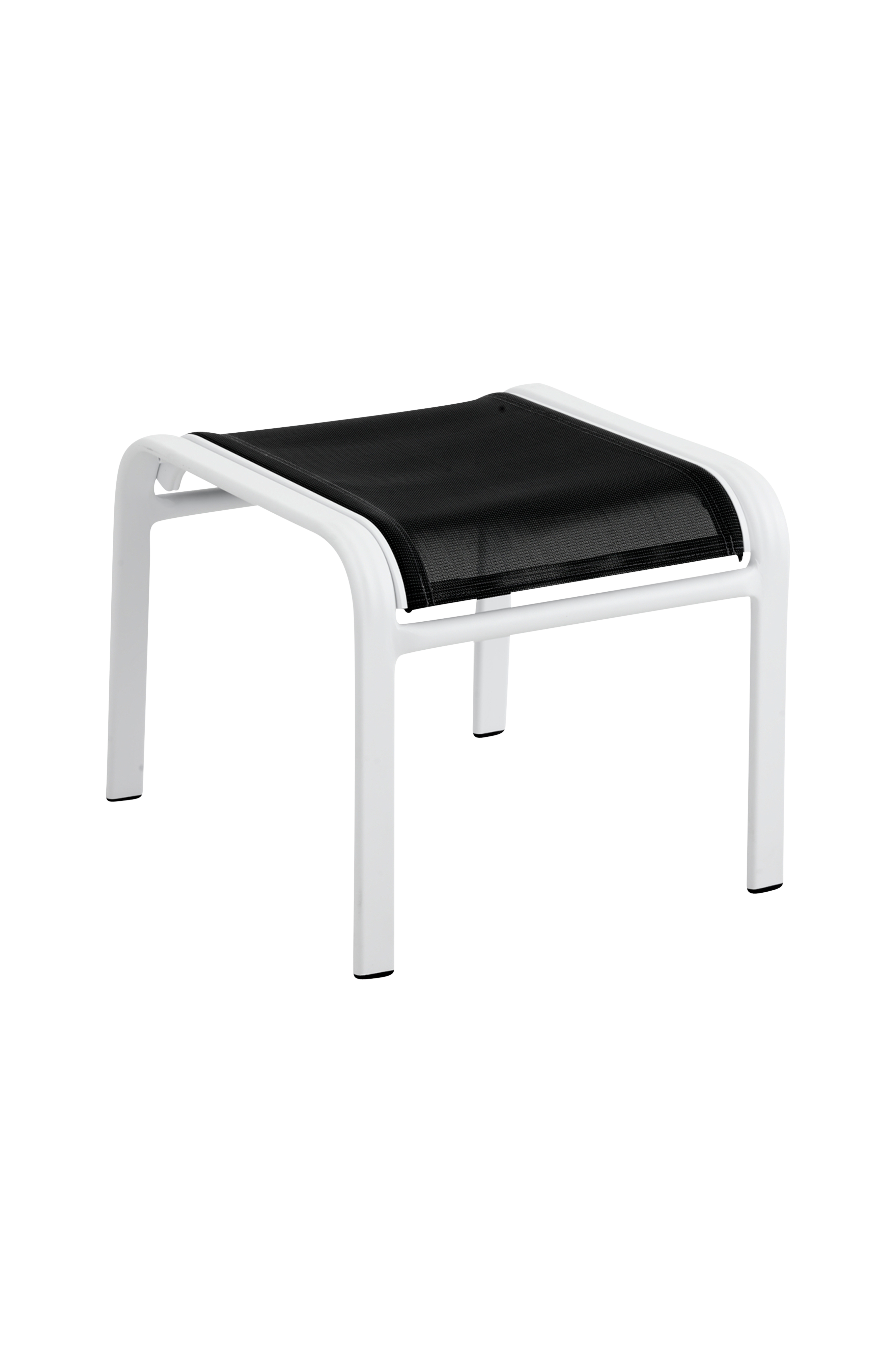 Rana fodskammel i aluminium og antracitfarvet tekstil.