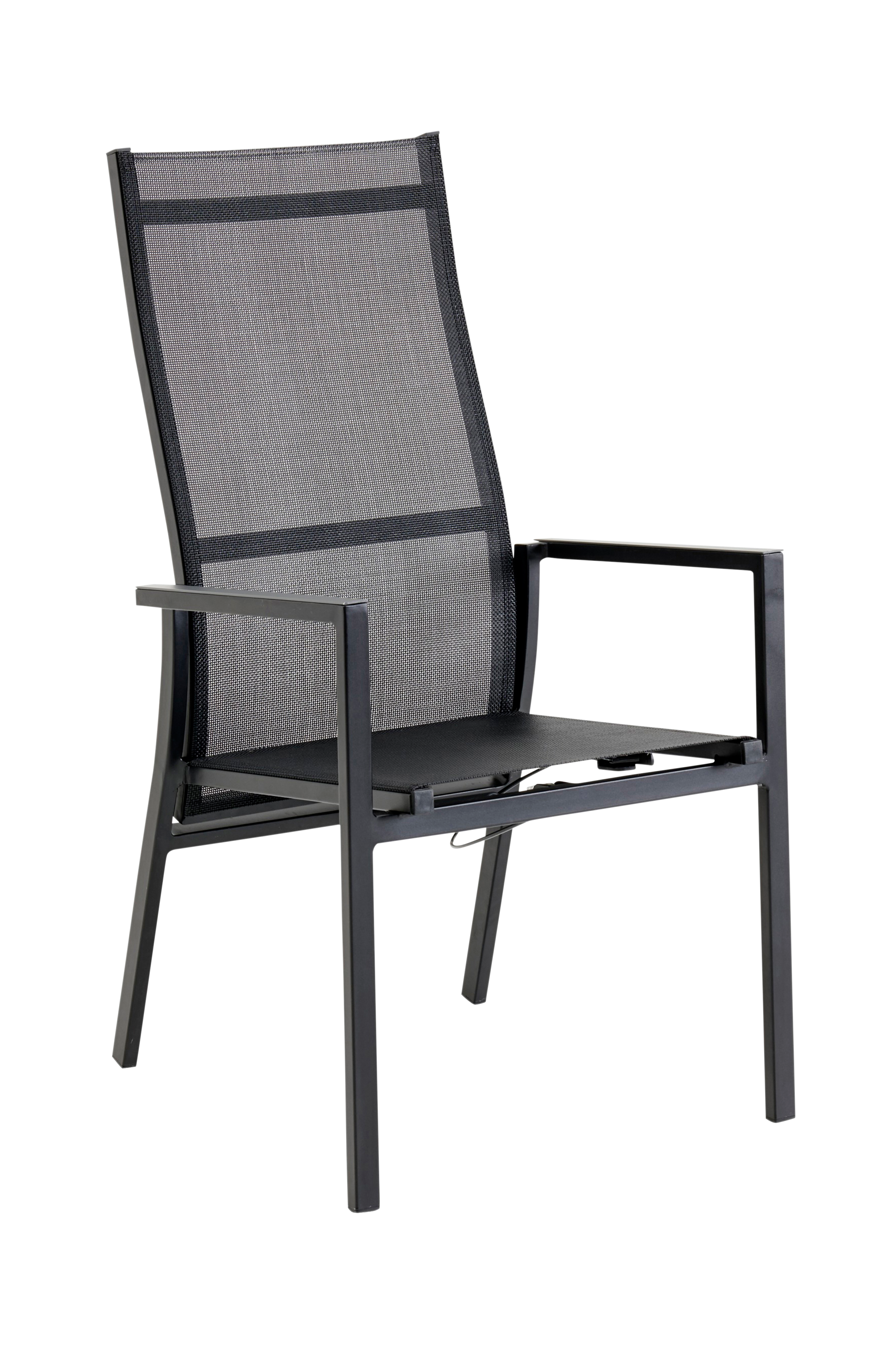 En lækker stol i en flot kombination af lakeret aluminiumsstel og textilene.. Stolene kan med fordel matches med et af vores borde, og fordi stolene er stabelbare, kan du hurtigt og nemt frigøre plads til noget andet, når behovet opstår. 4 stole medfølger. Samlet højde 109 cm, bredde 50 cm, dybde 62 cm, siddehøjde 45 cm. Samlet.