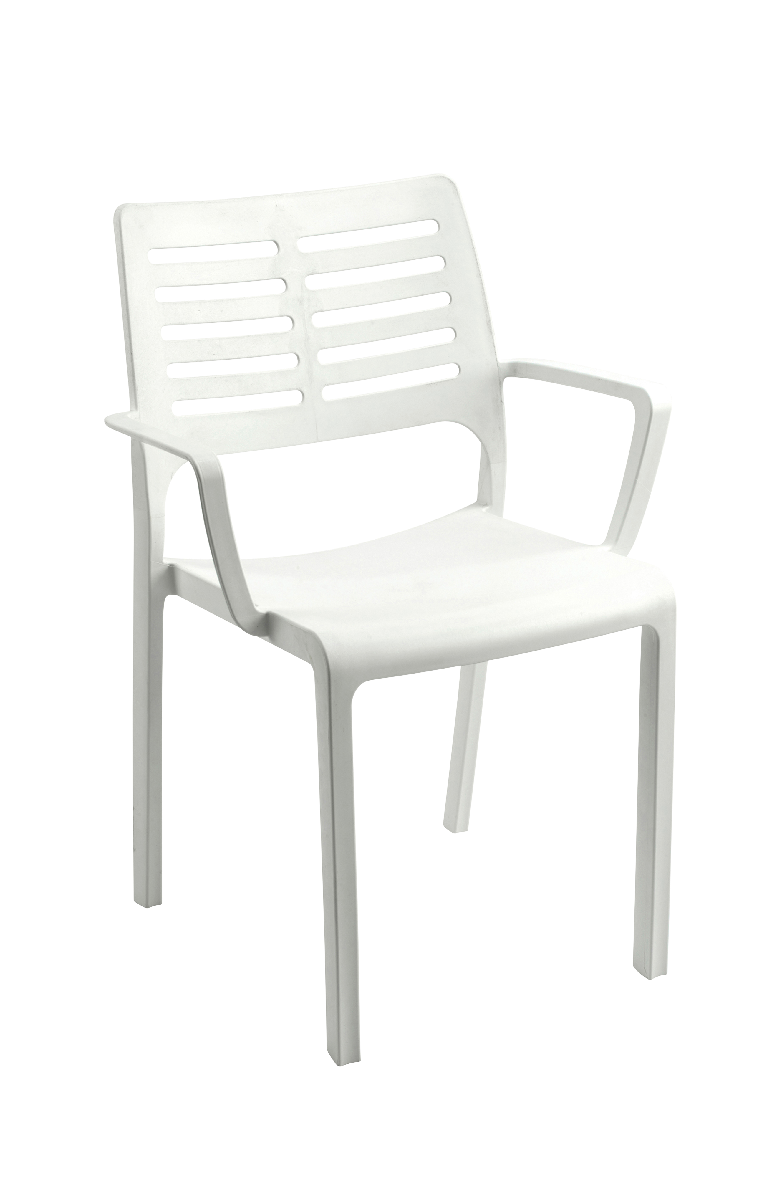 En stapelbar stol med armlæn i et tidløst design, som med sit robuste og vedligeholdelsesnemme materiale passer både til en café og til dit hjem. Stolen har en teknopolymerstruktur som er forstærket med glasfiber. 4 stole medfølger. Samlet højde 82 cm, bredde 58 cm, dybde 53 cm, siddehøjde 45 cm. Samlet.