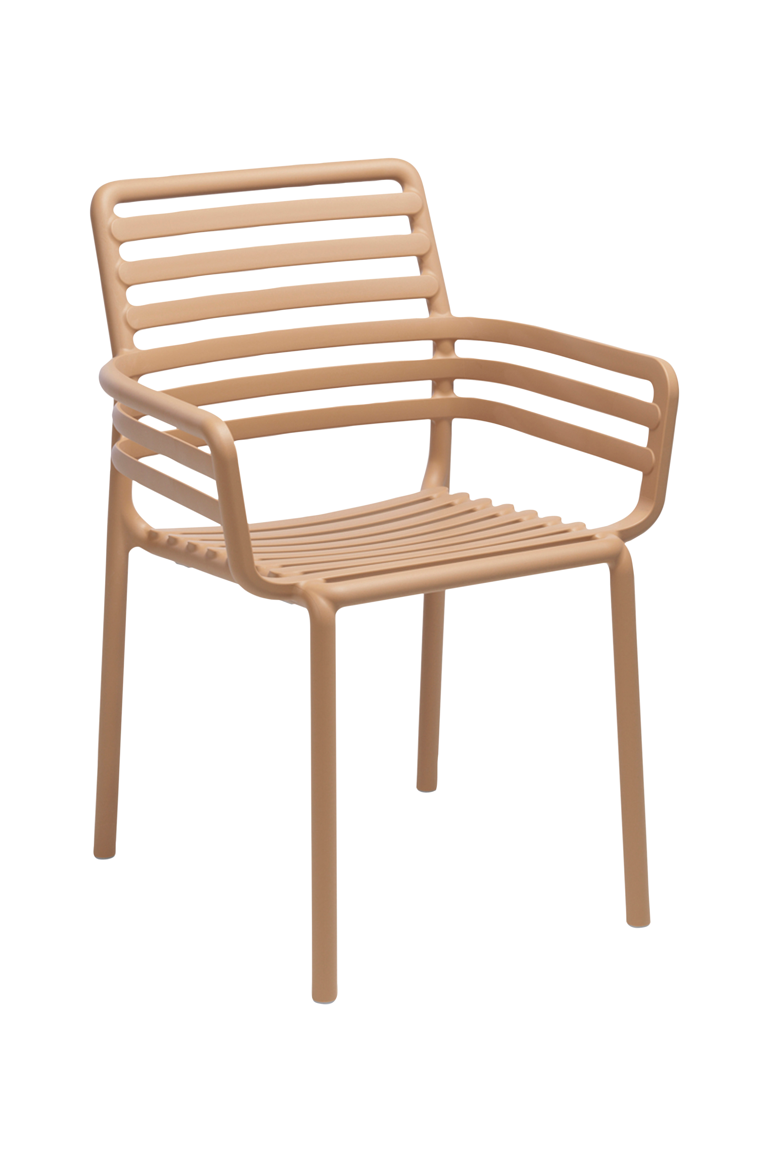 Elegant stabelstol med armlæn fra italienske Nardi. Helstøbt i slagbestandig plast (glasfiberforstærket polypropylen) og fås i flere flotte farver. Frisk, let og ergonomisk er tre ord, der beskriver Doga stolen. Den er praktisk at flytte, stabelbar, nem at rengøre og fuldstændig genanvendelig. Sælges i pakke med 6.