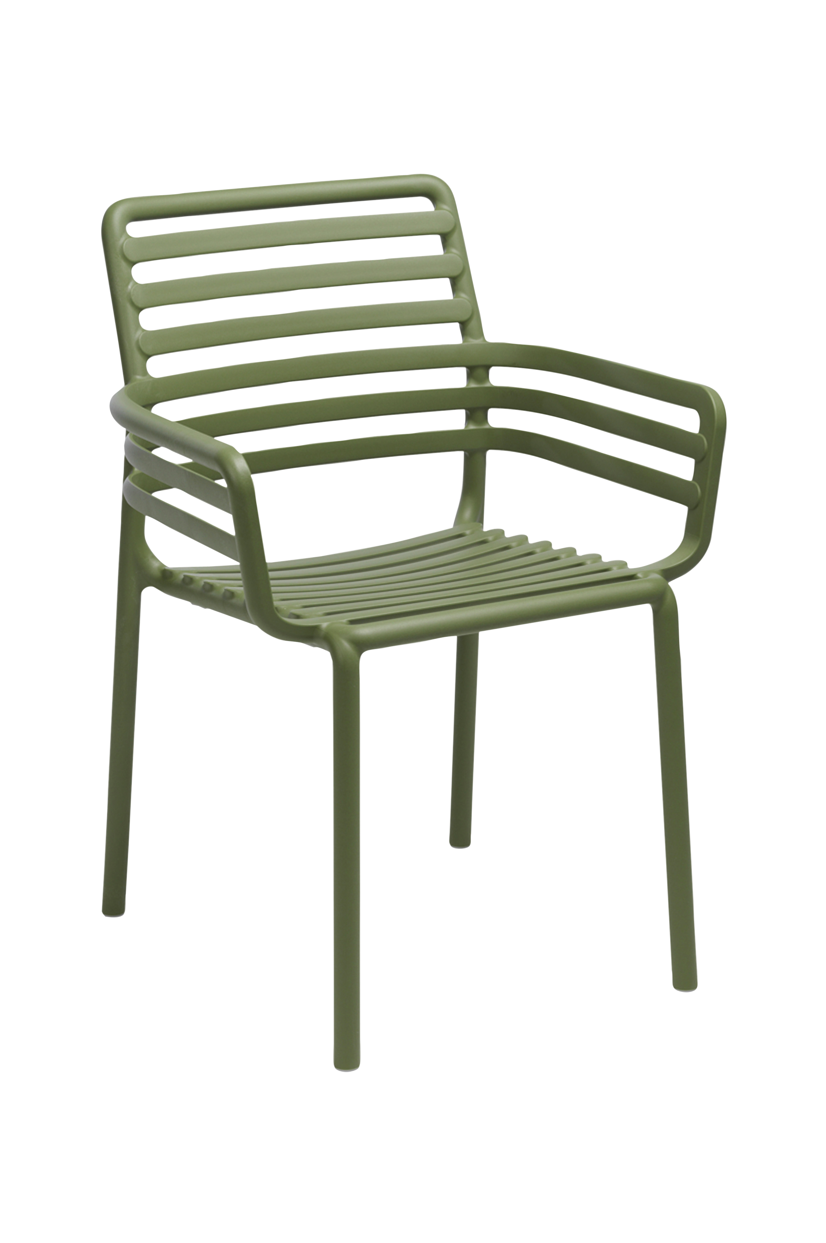 Elegant stabelstol med armlæn fra italienske Nardi. Helstøbt i slagbestandig plast (glasfiberforstærket polypropylen) og fås i flere flotte farver. Frisk, let og ergonomisk er tre ord, der beskriver Doga stolen. Den er praktisk at flytte, stabelbar, nem at rengøre og fuldstændig genanvendelig. Sælges i pakke med 6.