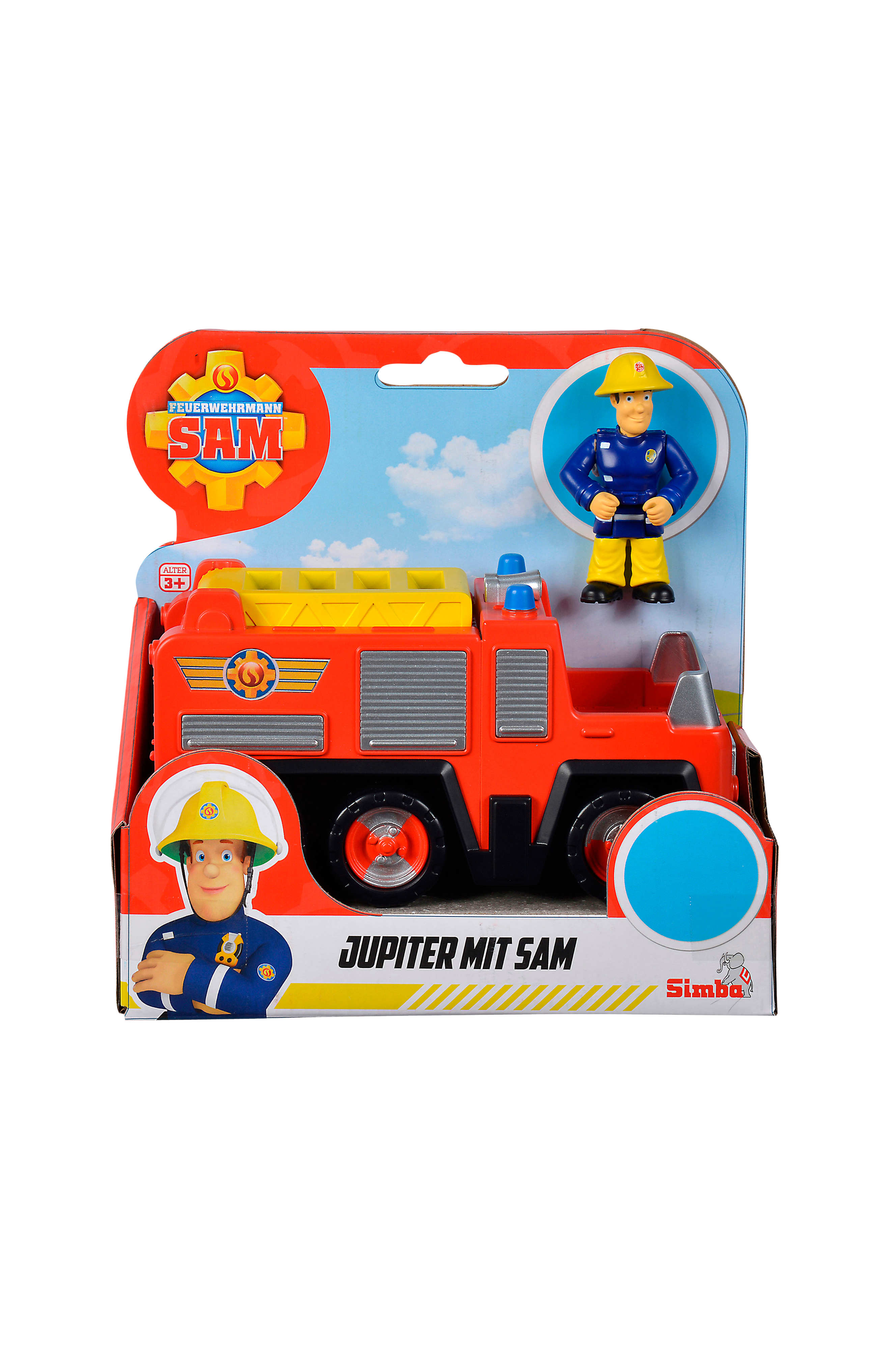 Udover brandbilen indeholder dette legesæt Brandmand Sam som kan placeres i førerhuset. På taget af bilen er der en gul brandstige som kan trækkes ud.