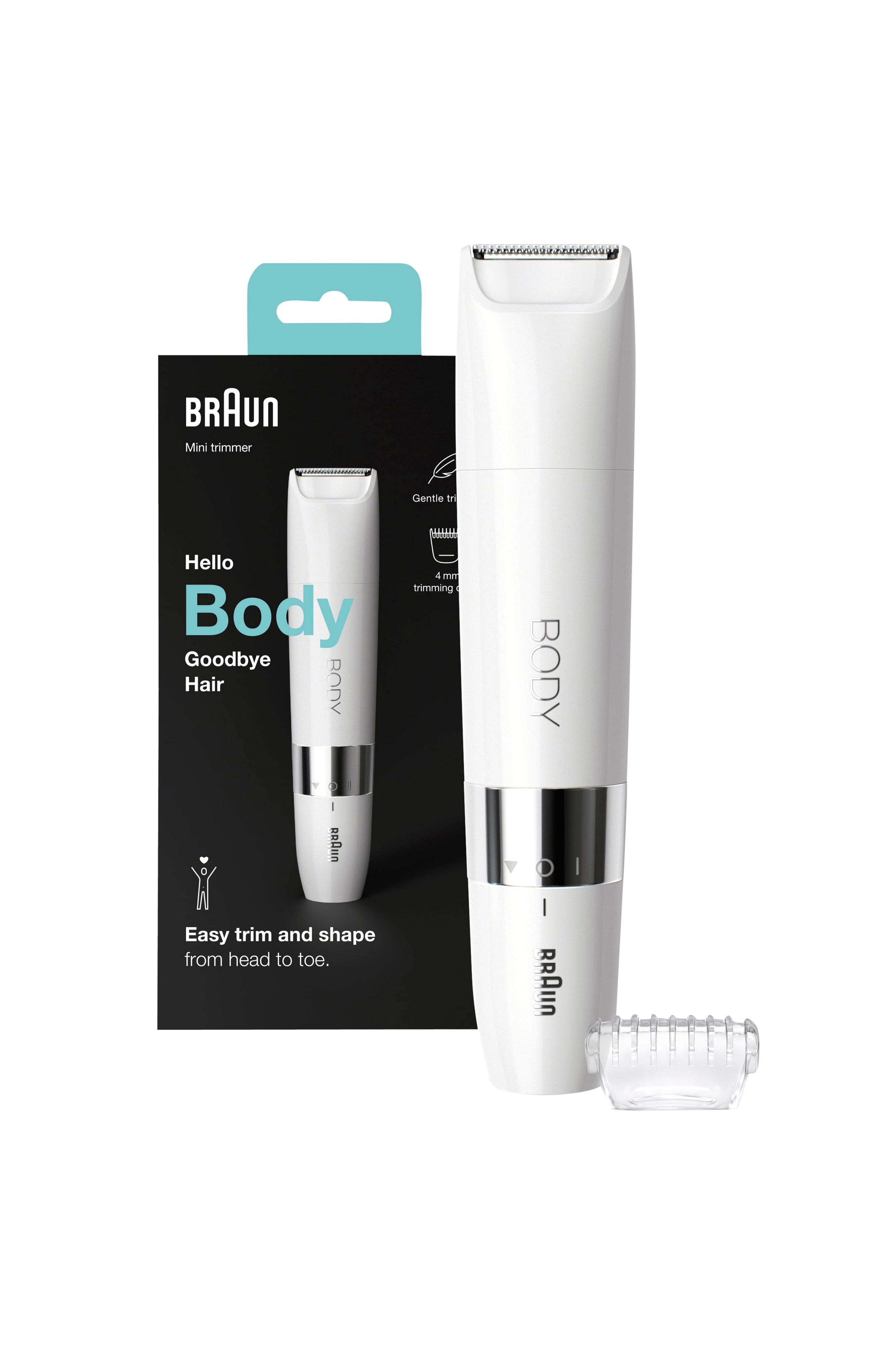 Hårfjerning med præcision til bikinilinje, armhuler og bryst. En funktionel kropshårstrimmer i miniformat som giver hurtige, enkle og skånsomme resultater - også på følsomme områder. Brauns Minitrimmer klipper med præcision, hvilket giver dig tæt kontrol over hårets længde.