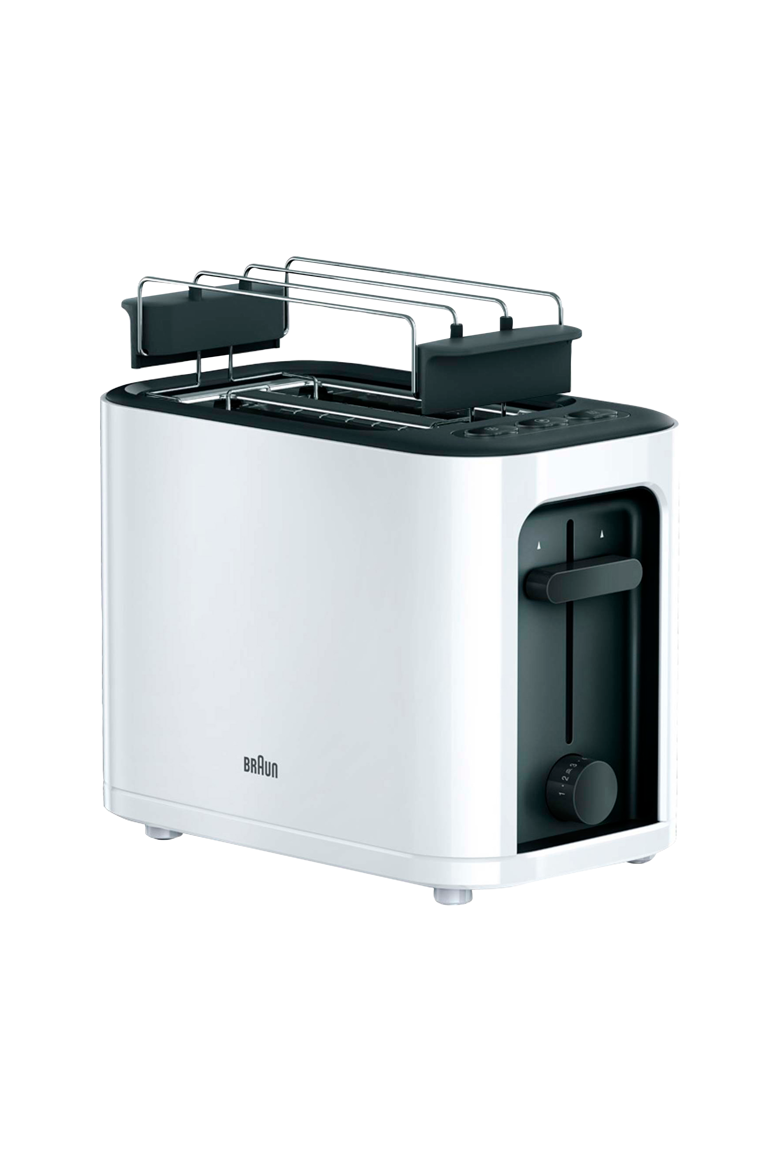 En brødrister fra Braun er uundværlig til morgenmaden med sit moderne look og brugervenlige funktioner. Den har praktiske funktioner som en komfortløftemekanisme, en aftagelig krummebakke og justerbare bruningsindstillinger, hvilket gør den til en fornøjelse at bruge.