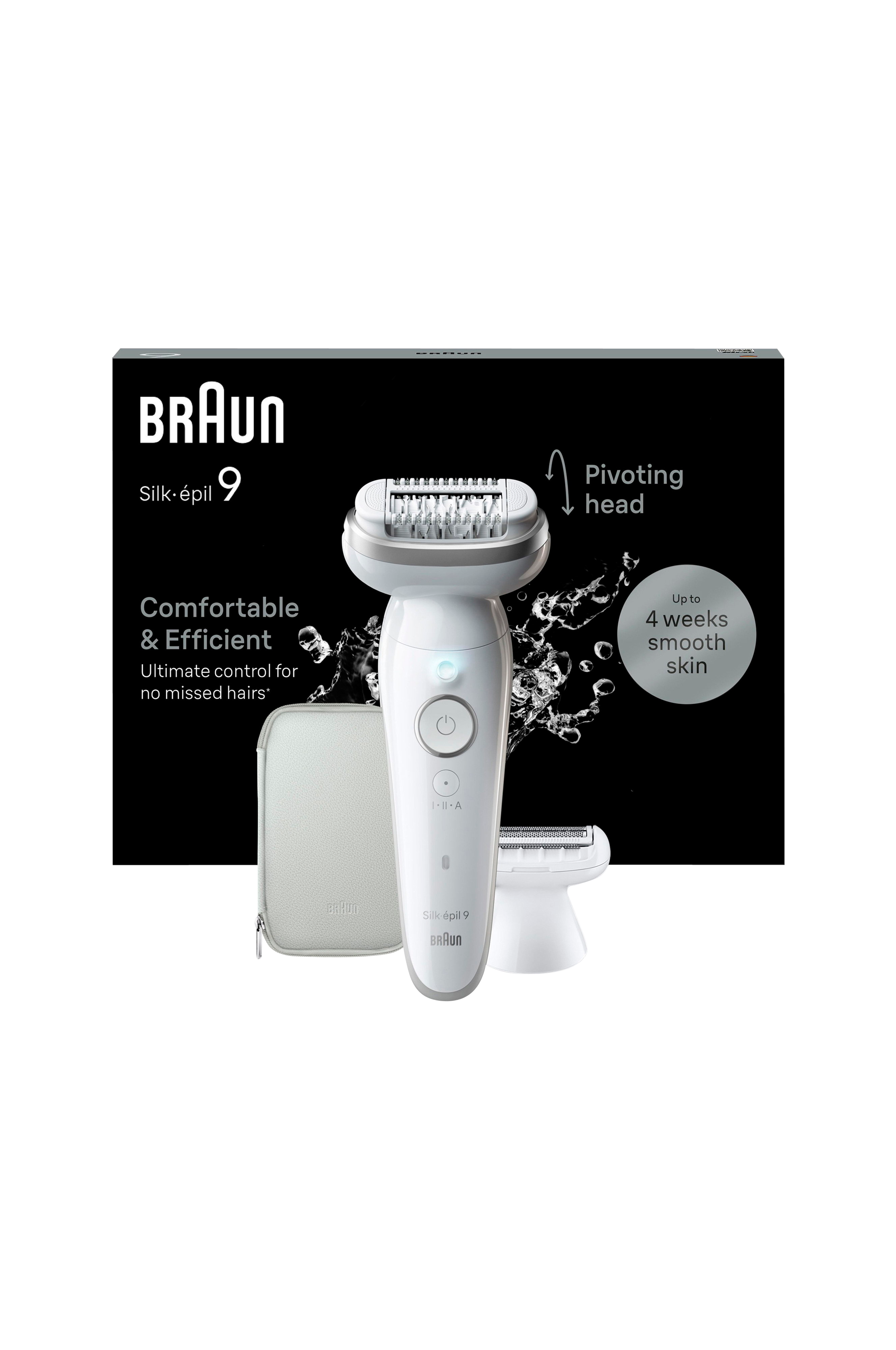 Braun Silk-épil 9 9-041 Epilator giver langvarig glat hud i op til en måned, bekvemt når som helst. Denne ledningsfri våd- og tørepilator har et bredt, drejeligt hoved, der ubesværet følger dine konturer. Med 40 MicroGrip-pincetter fanger den hår helt ned til 0,5 mm, hvilket sikrer langvarig glathed.