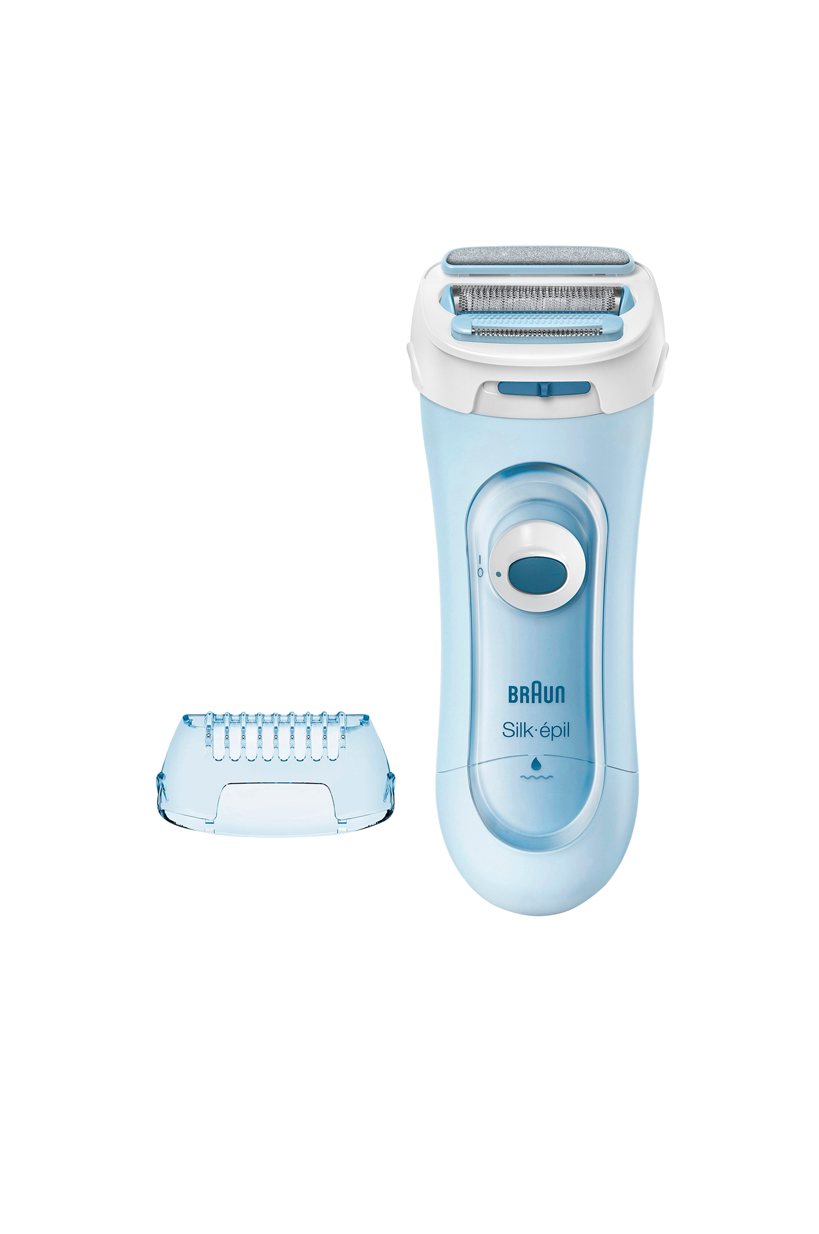 Silk-épil Electric Lady Shaver 5-160 er et 3-i-1 barberings-, trimnings- og eksfolieringssystem til brug på ben, under armene og bikinilinjen. 100% vandtæt og Wet & Dry for brug i badet eller bruseren. Exfolieringstilbehøret exfolierer nænsomt huden under barbering for et glattere resultat. Det afrundede hoved tilpasser sig kroppens konturer for nem brug. En trimmerkappe til blid hårfjerning i følsomme områder som bikinilinjen. Inkl. 2 tilbehørsdele: exfolieringstilbehør, trimmerkappe.