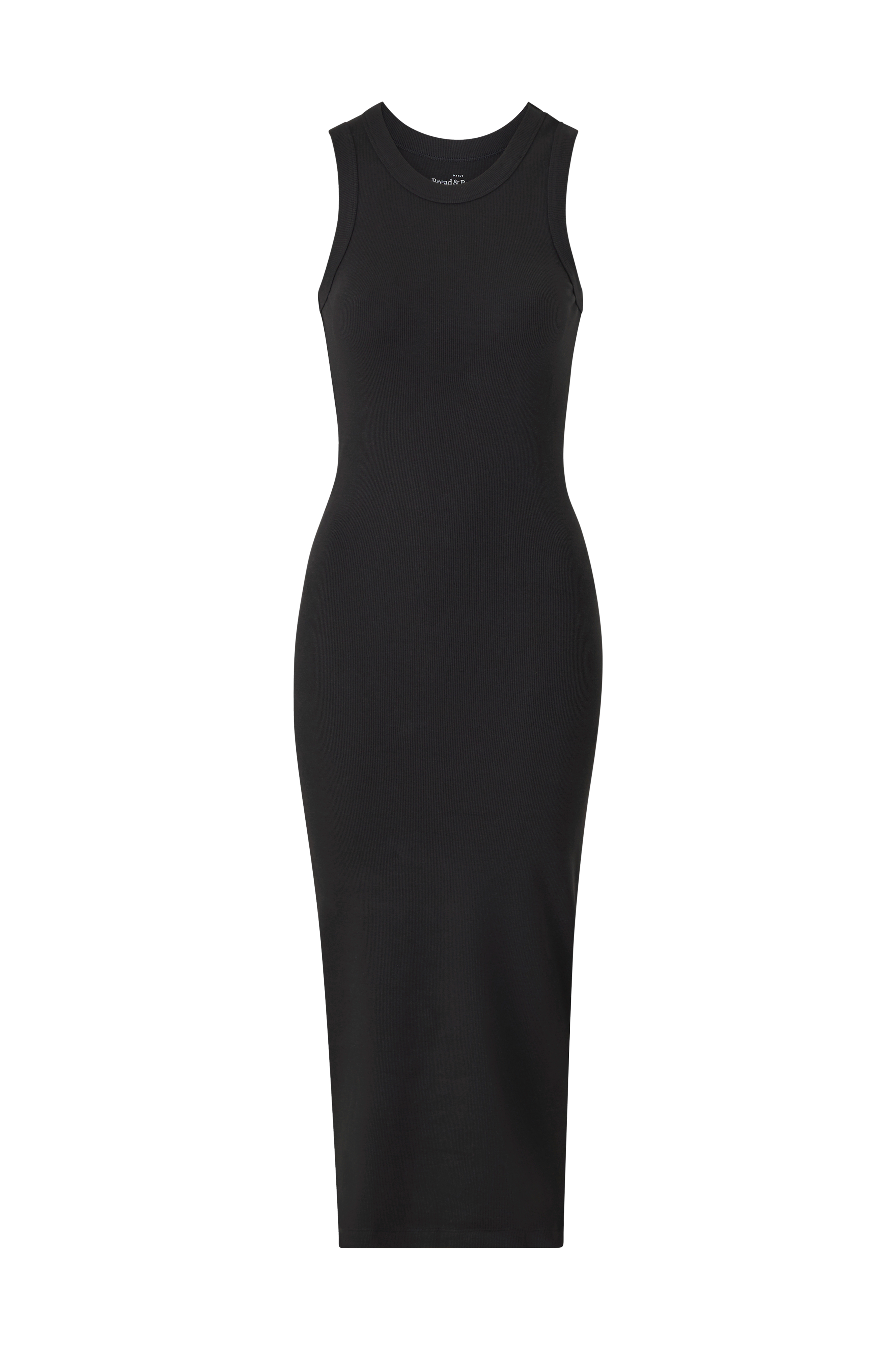 • Ribbet kjole i bomuldsjersey• Ærmeløs, figursyet model• Længde: 124 cm i størrelse S