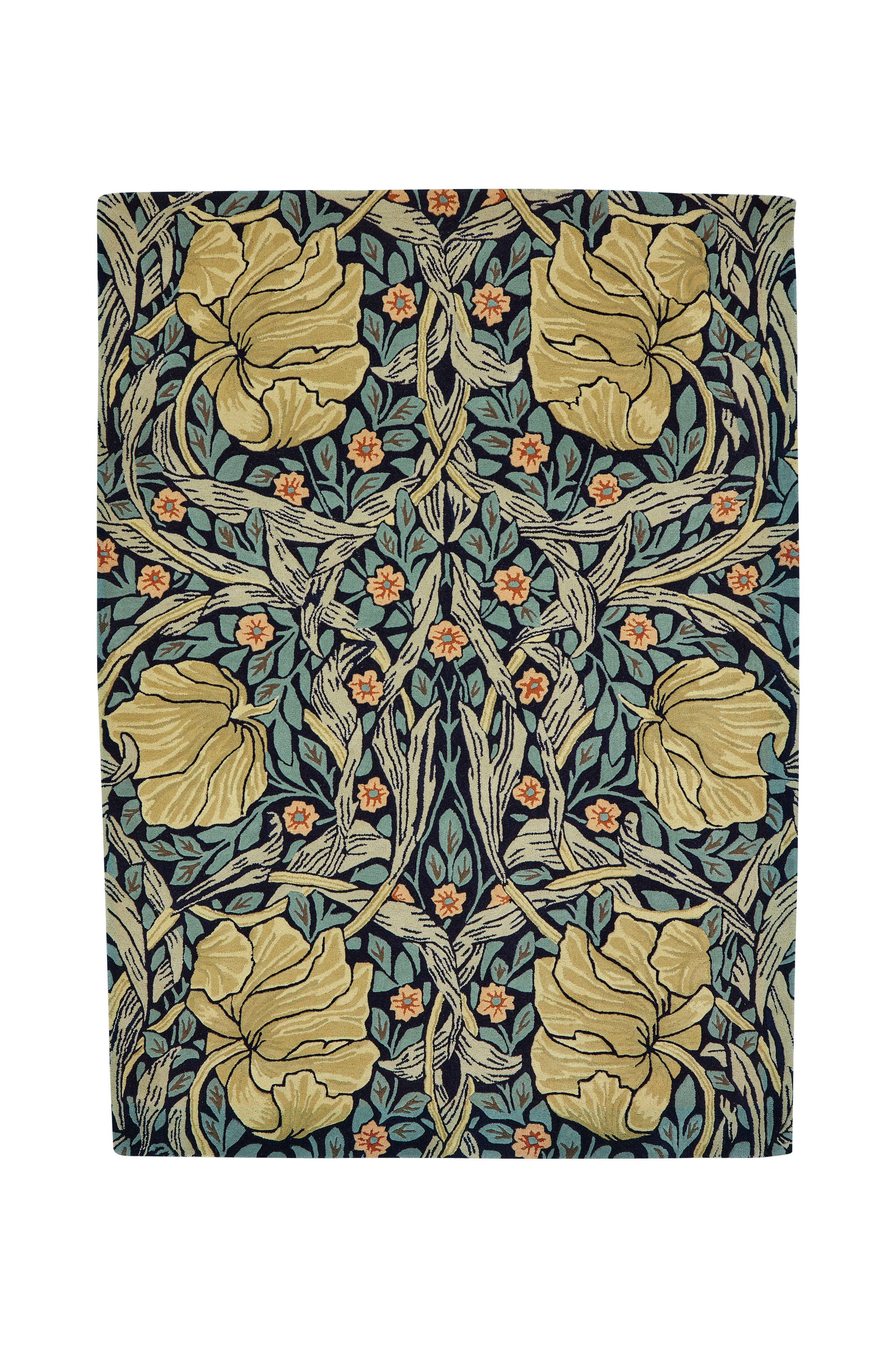 Morris-kollektionen er håndtuftet og fremstillet i Indien. Luvmaterialet er ren ny uld, bagsiden er lavet af bomuld/latex. Den samlede højde er 17 mm.