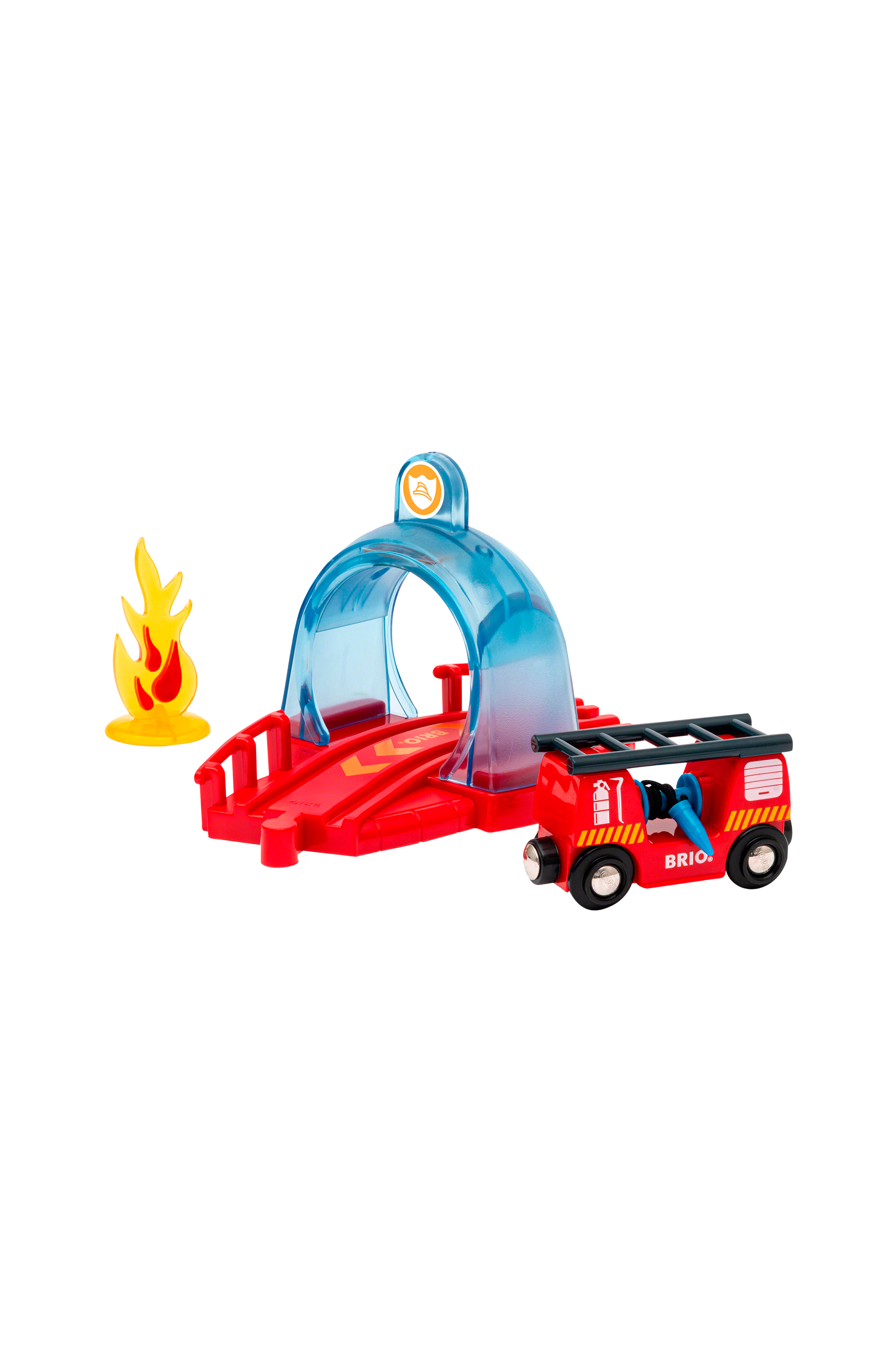 Åh nej! Det brænder! 33976 Rescue Action Tunnel-sættet er spændende brandslukning til din BRIO World togbane.