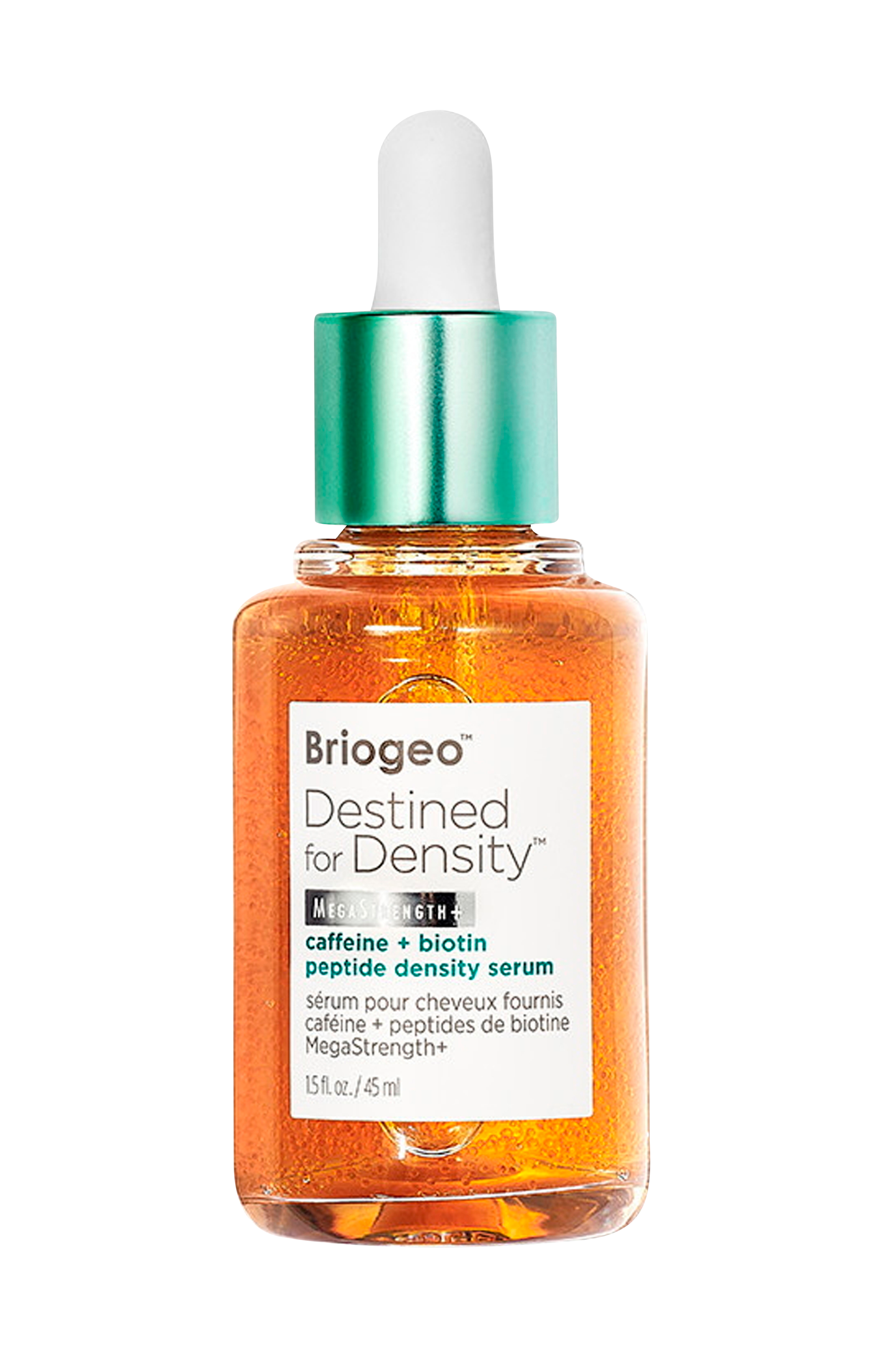 Destined for Density™ MegaStrength+ Caffeine + Biotin Peptide Density Serum er en potent, men let formel med 5 % af vores unikke follikelstøttekompleks, herunder videnskabeligt dokumenterede ingredienser som kobberpeptider og zink, der hjælper med at gøre håret tykkere. Denne duftfri formel indeholder også koffein, grøn kaffeolie og CoQ10 for at fremme næringsrig mikrocirkulation til hovedbunden og hårrødderne for at give fyldigere og sundere hår. 97 % naturligt afledt.