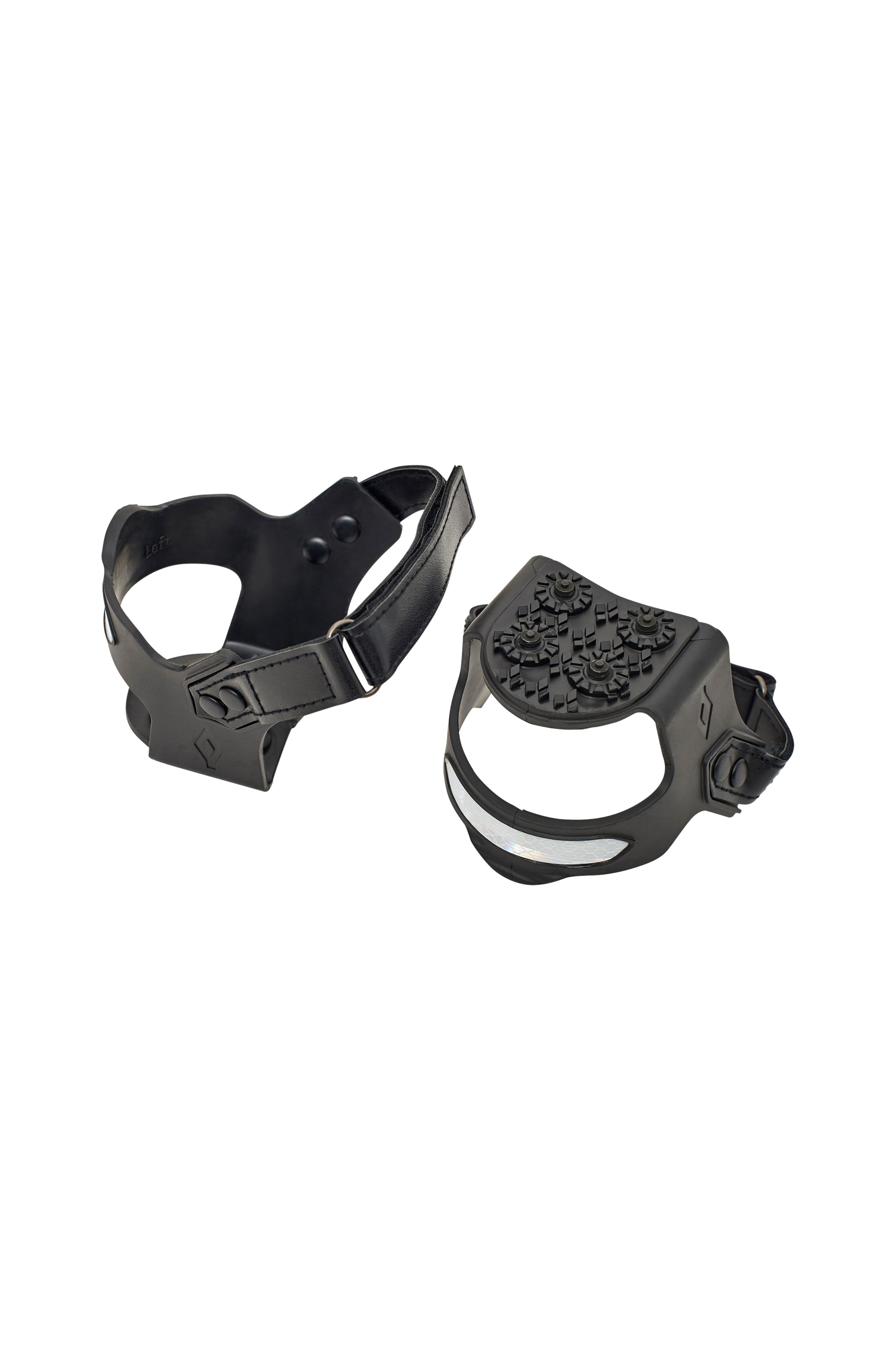 Pigsåler Walksafe Heelgrip fra Springyard. Pigsåler til gåture (walking). Med pigsåler på dine sko kan du gå sikkert trods isglat underlag. De fire dupper og den mønstrede undersiden giver et godt greb. 3M-refleks i hælpartiet giver god synlighed. Pigsålen fastgøres på hælen af skoen med velcro, hvilket gør dem nemme at tage på og af. Passer alle typer af sko og spadseresko. Fremstillet i slidstærkt TPR (termoplastisk gummi) med slidstærke integrerede dupper i tungstenkarbid.
