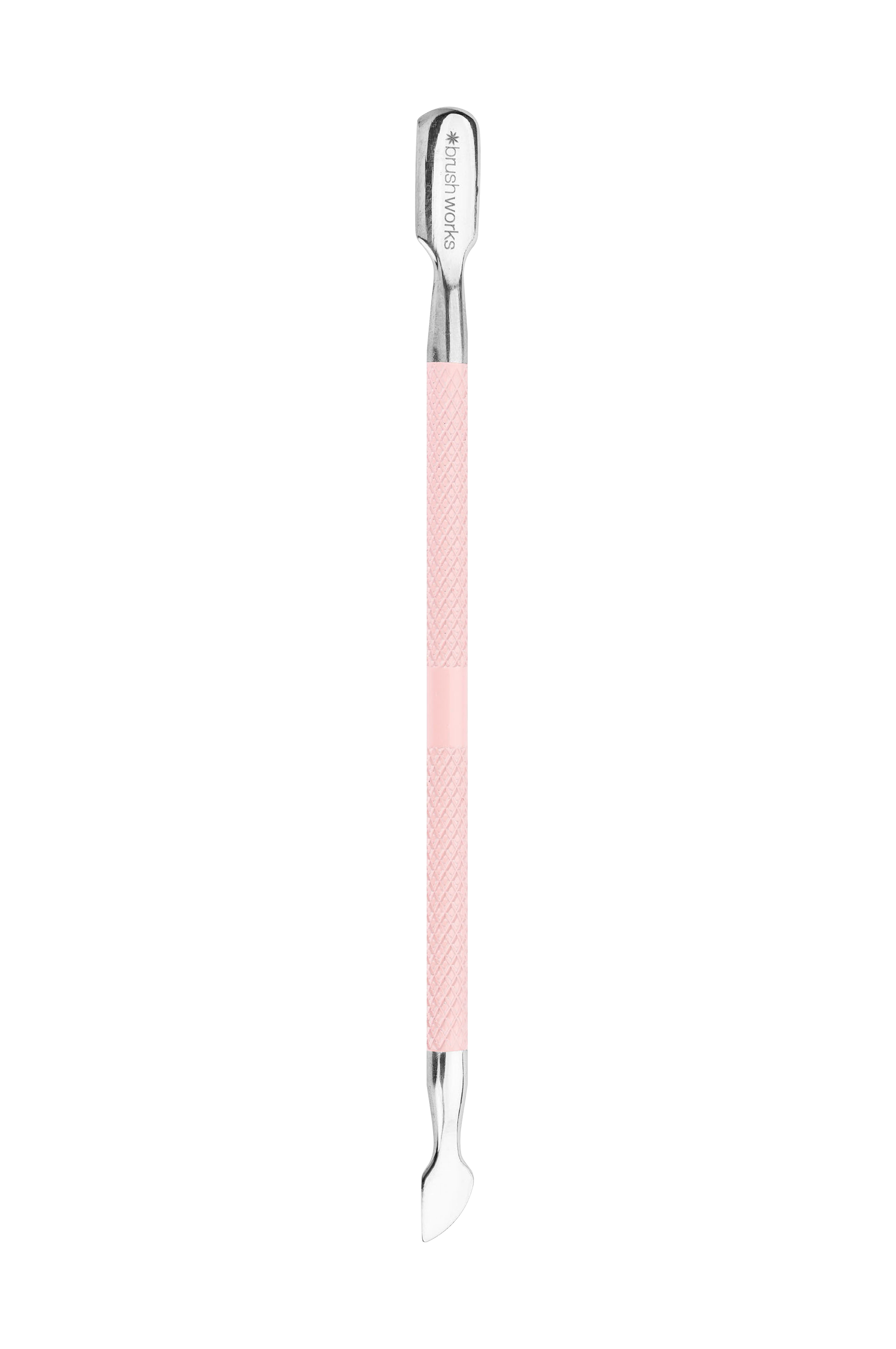 Dobbelt manicureredskab i rustfrit stål. Enden er formet til komfortabelt at følge formen af neglebåndene, mens den buede kant fjerner hudaflejringer.