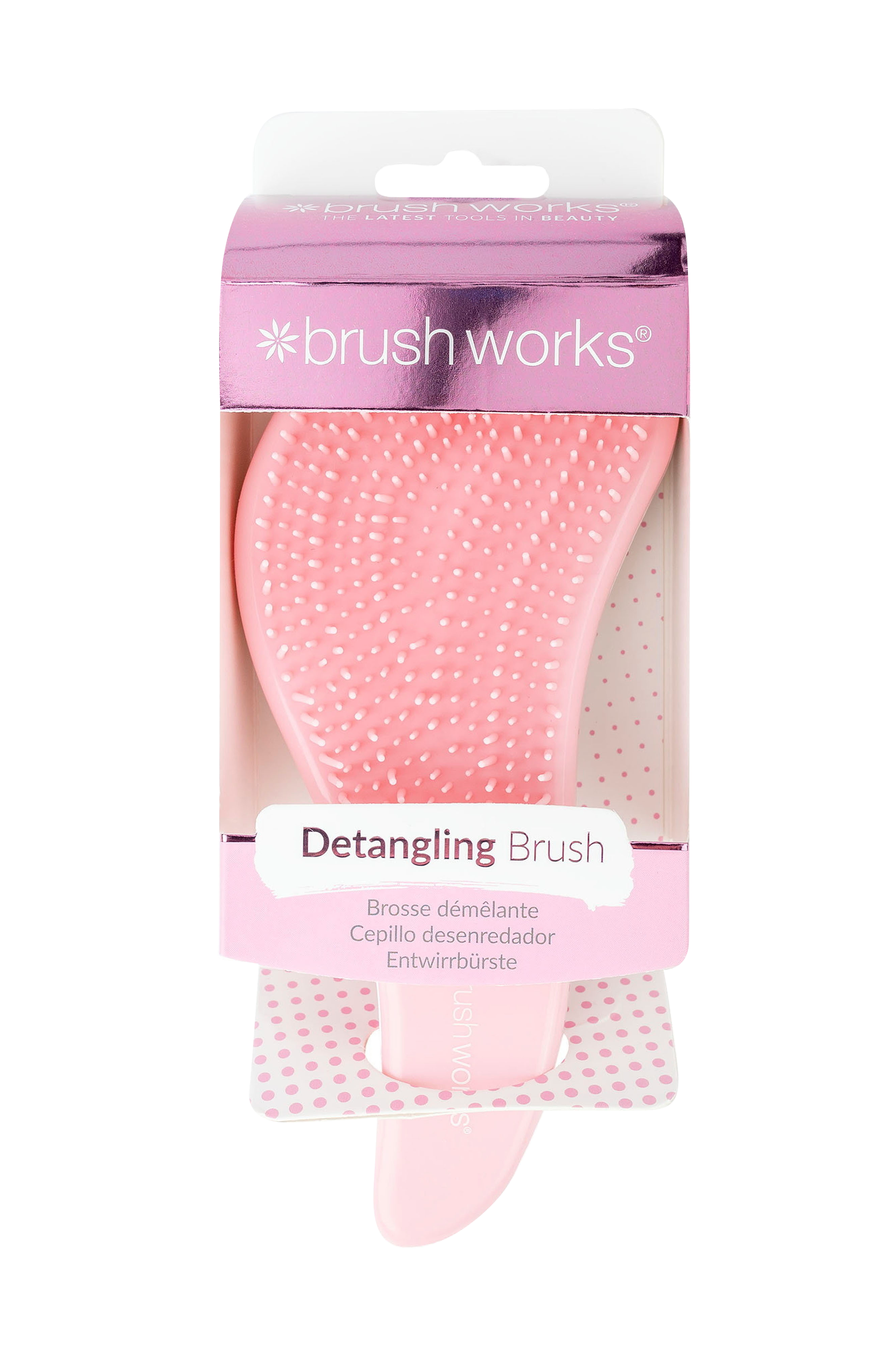 For silkeagtigt og filtfrit hår skal du bruge Brushworks Professional Detangling Hair Brush! De fleksible, bløde, tilspidsede børstehår er skånsomme mod hovedbunden og hjælper med at reducere skader forårsaget af børstning, hvilket resulterer i færre spaltede spidser. Børsten glider let gennem dit hår uden at trække, så du kan børste dit hår uden smerter. Vores ergonomisk designede og konturerede børstehåndtag passer perfekt i din håndflade og gør det hurtigere og nemmere at børste dit hår.