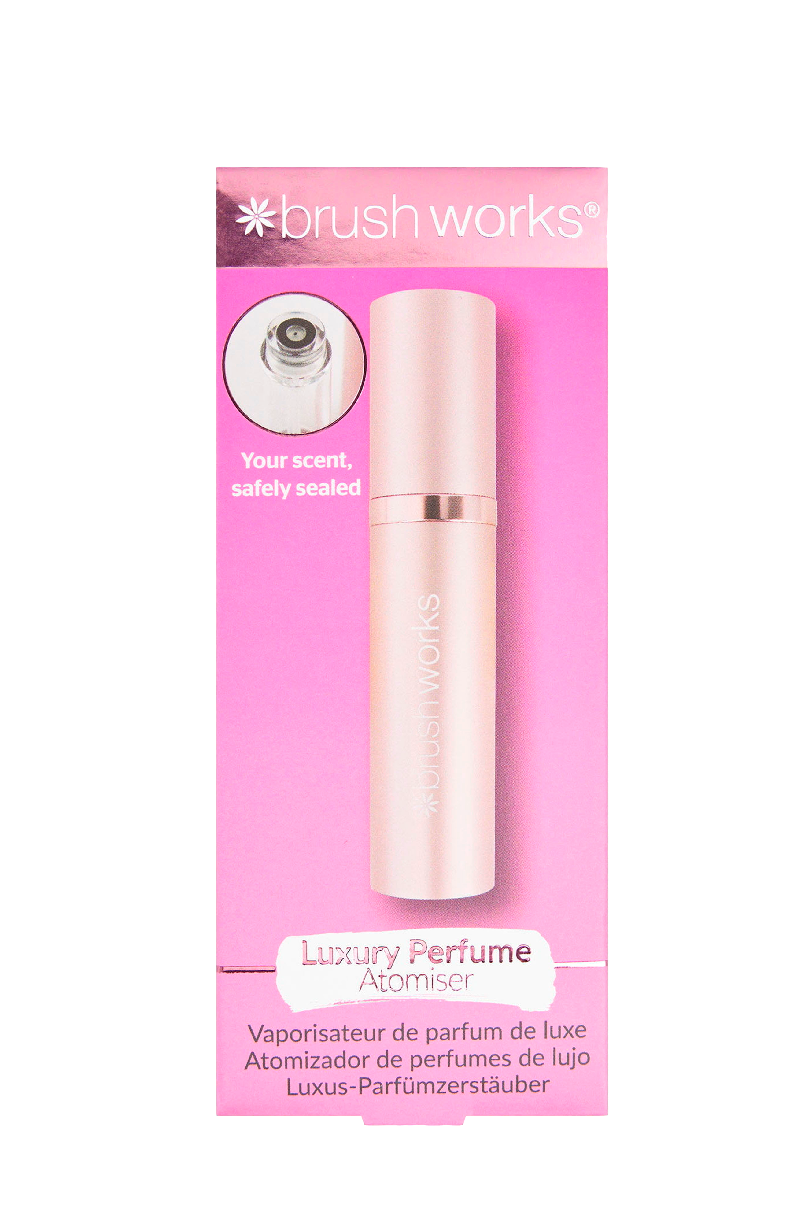 Oplev den ultimative måde at bære din signaturduft på med Brushworks Luxury Perfume Atomiser - en slank, kompakt og genopfyldelig essentiel, der får dig til at dufte fantastisk, uanset hvor du går. Denne kompakte og lette forstøver er designet til bekvemmelighed og stil og giver dig mulighed for at opfriske din duft når som helst, uden at du behøver at bære rundt på store parfumeflasker.