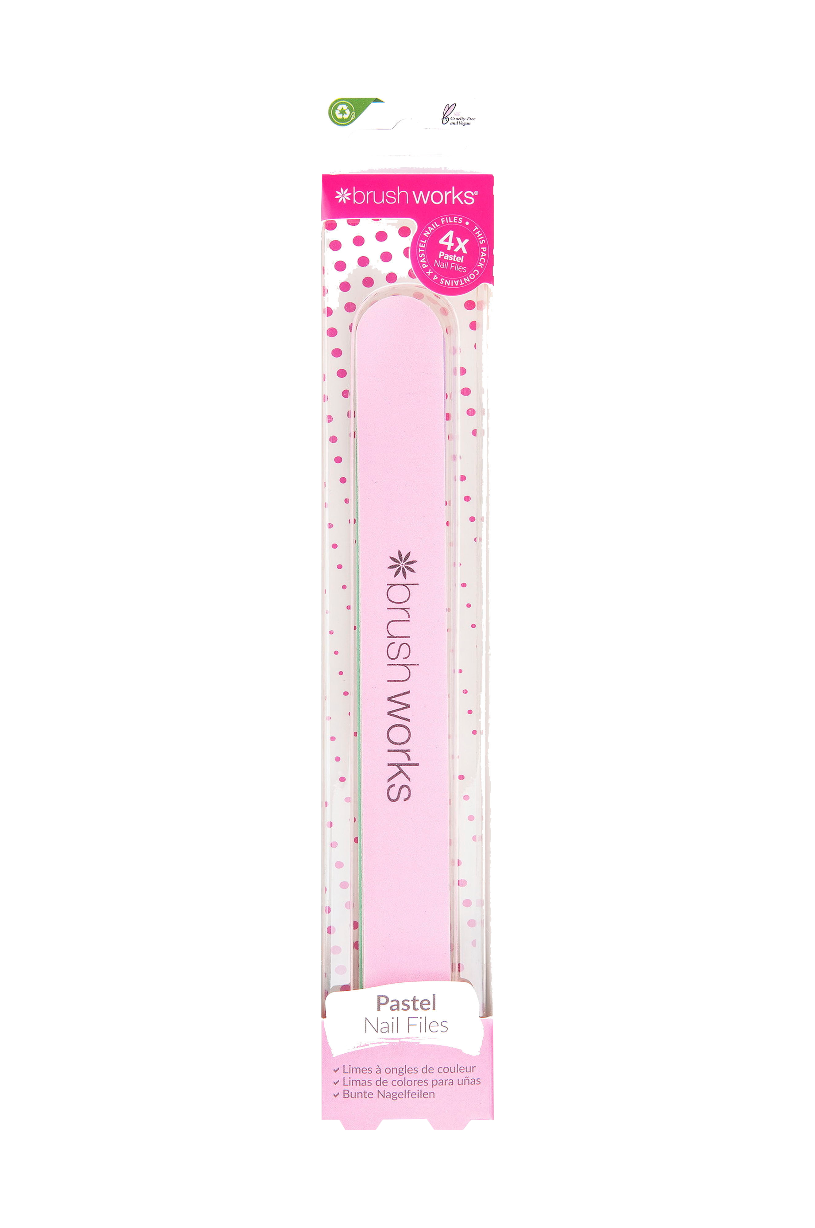 Opgrader dine negle med Brushworks Pastel Nail Files. Disse fire neglefile er designet med en polstret skumkerne, der gør dem behagelige og fleksible at bruge, og de glatter og former dine negle perfekt, så du får et rent resultat uden besvær. Kan bruges på naturlige og kunstige negle.