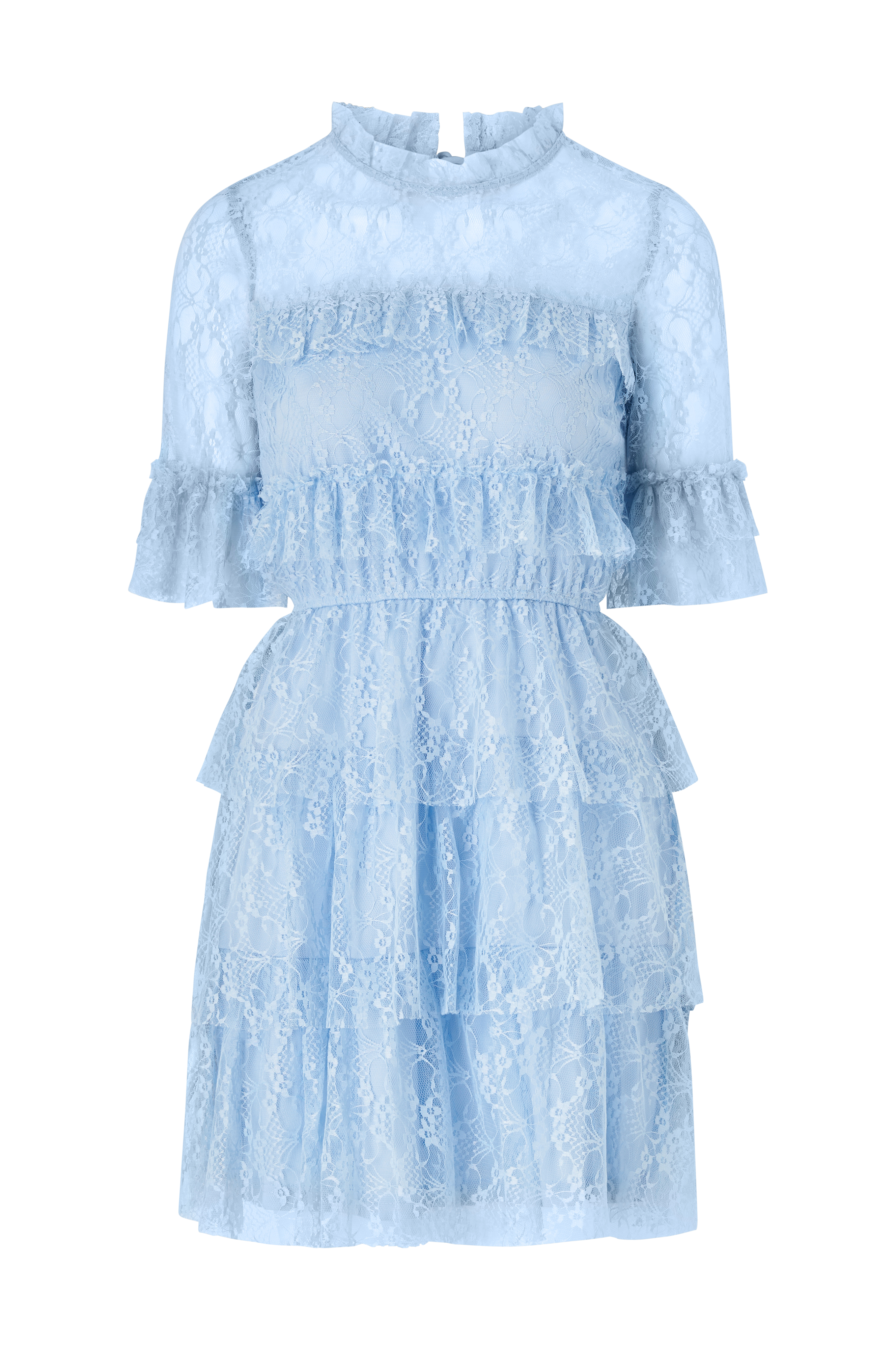 • Foret blondekjole i blød kvalitet• Rund, høj halsudskæring• Ventilation med knap i nakken• Elastik ved taljen• Blondevolanter på skørtet• Halvlange, uforede ærmer med blondevolanter ved ærmeafslutningerne• Længde: 92 cm i størrelse 36
