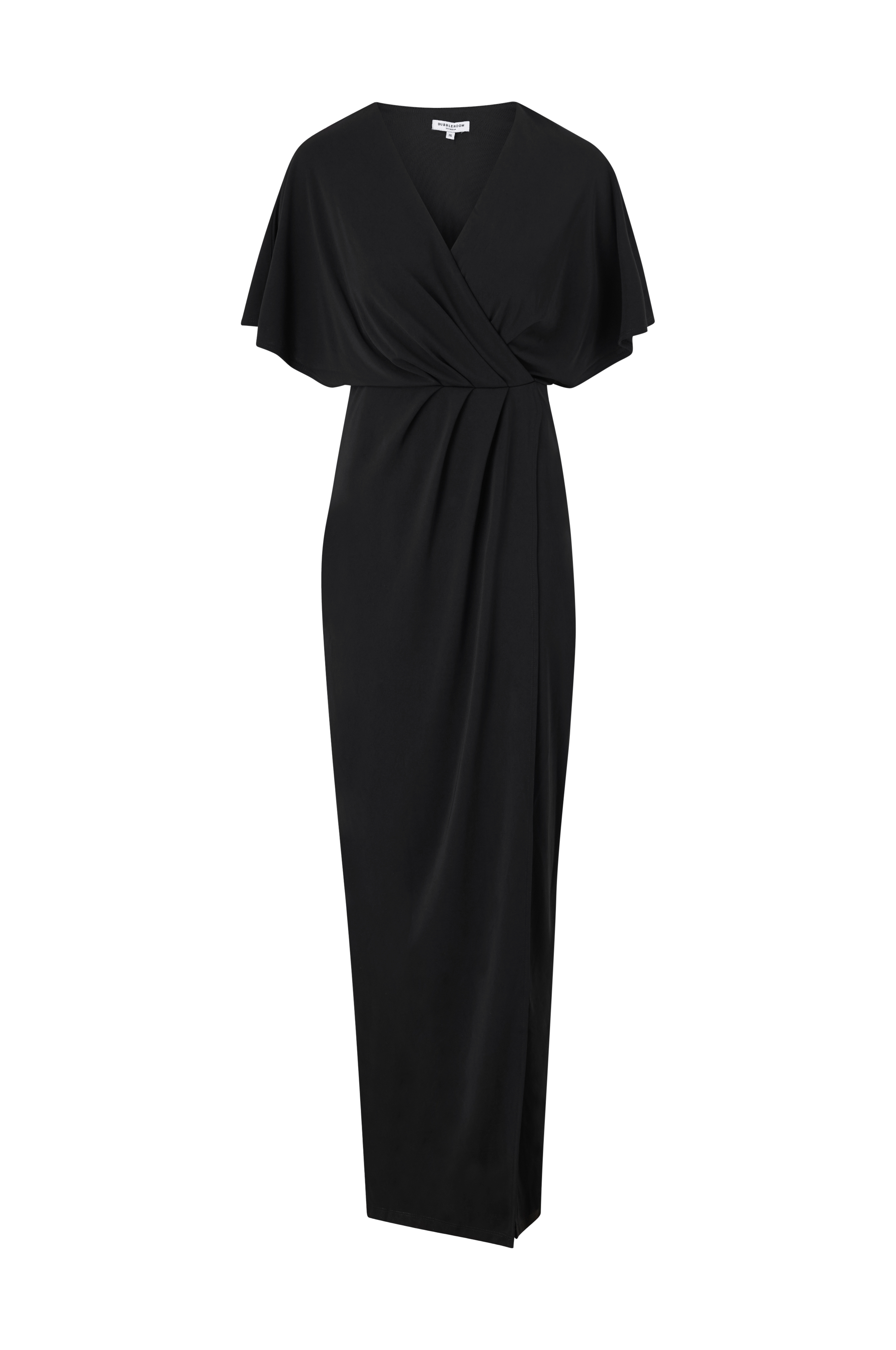 • Feminin maxi kjole i elastisk materiale• Draperet slå-om design på toppen• V-udskæring• Korte kimonoærmer• Foret øvre del• Skjult lynlås i siden• Høj slids i den ene side• Længde: 150 cm i størrelse 36