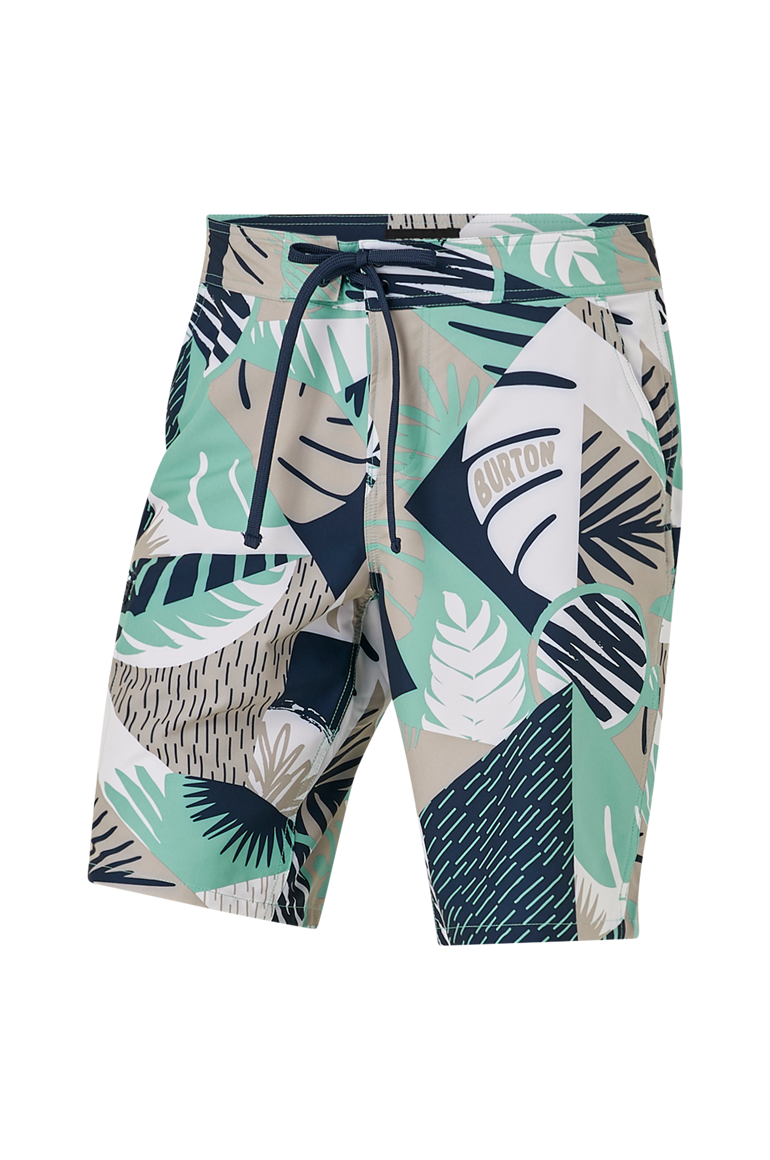 Boardshorts M Moxie Short fra Burton med printet mønster. Linning med løbegang og gylp med lynlås. To lommer foran, én baglomme med klap og trykknap samt en benlomme med lynlås.
