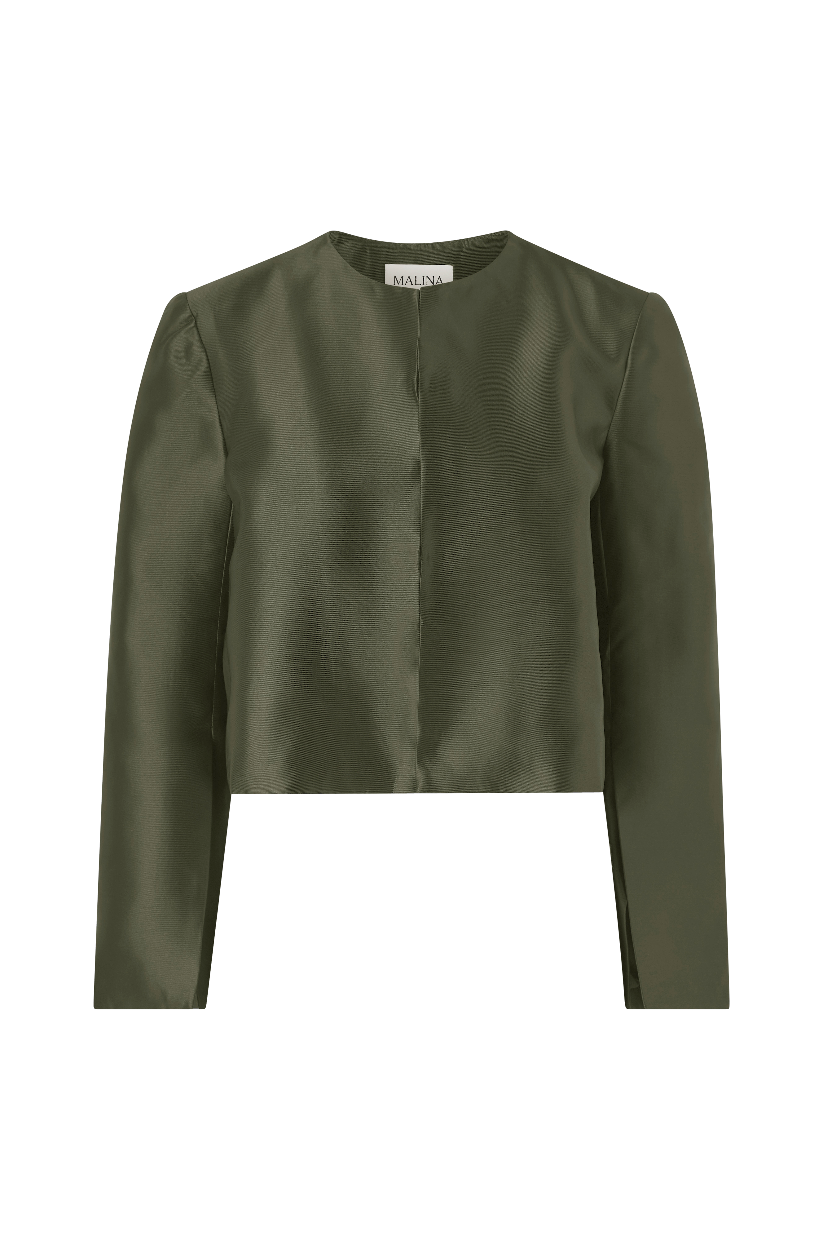 • Foret bluse i skinnende, skinnende materiale med skulderpuder• Lange arme med slids nederst• Afrundet halsudskæring• Åbning foran med hægtelukning• Croppet pasform med svaj
