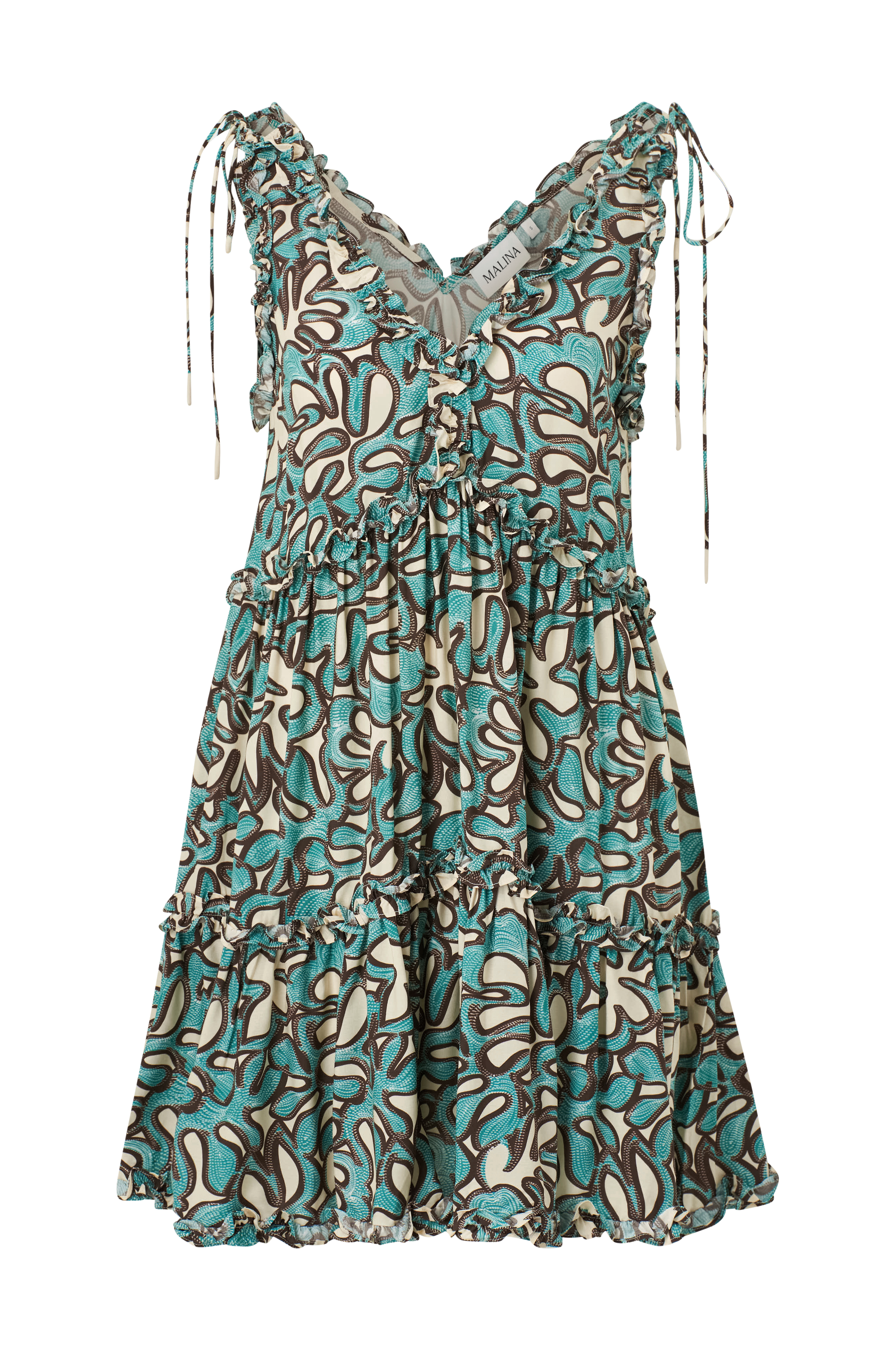 • Kort model med svaj• V-udskæring foran og bagpå• Volantdetaljer• Bindebånd på skuldrene• Længde: 87 cm i størrelse S