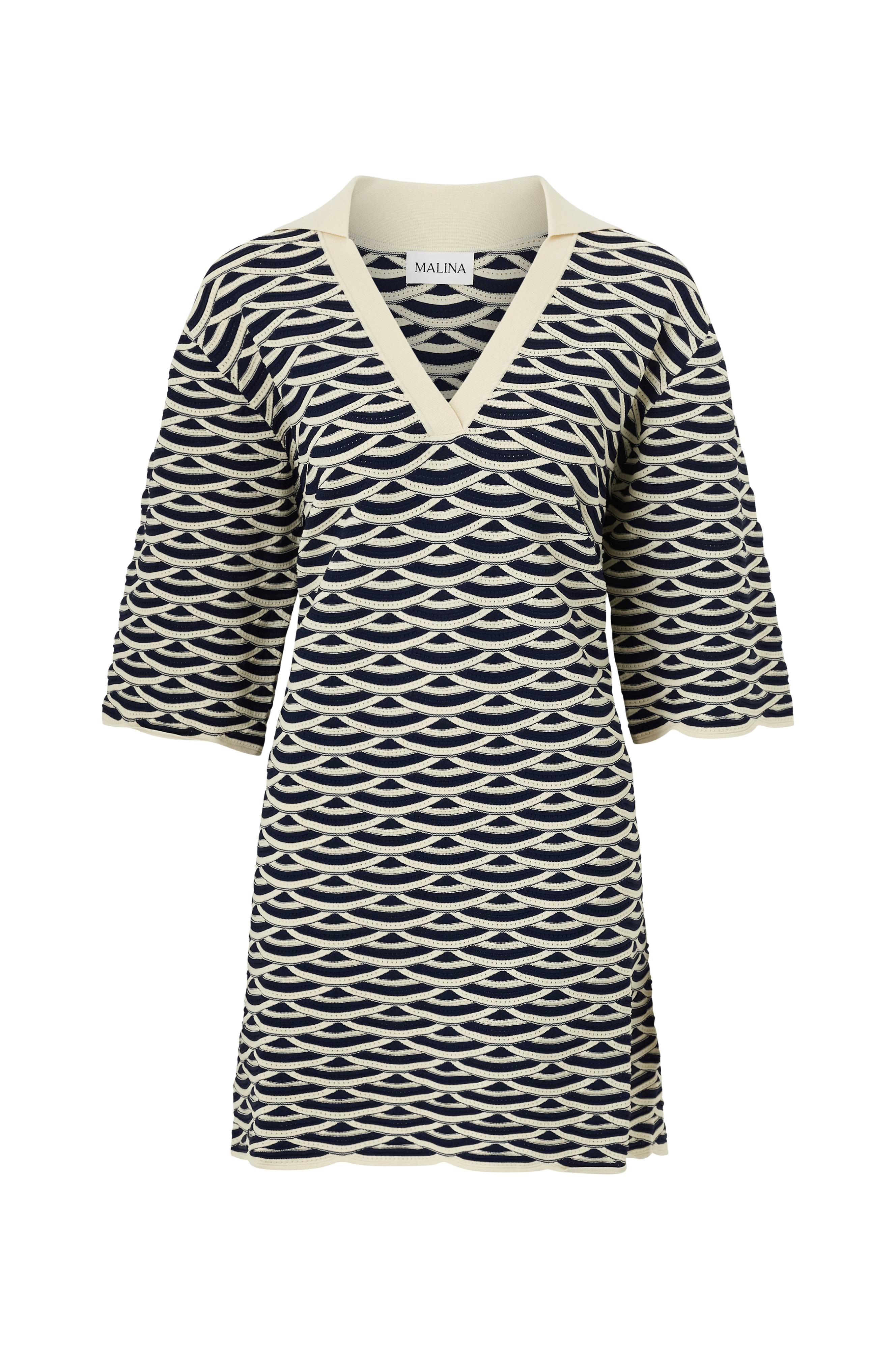• Fintstrikket kjole med struktur• Krave• V-udskæring• Kort ærme• Længde: 87 cm i størrelse S
